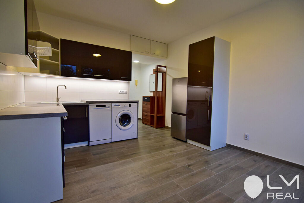 Kuchyně je vybavená spotřebiči (pračka, lednička, myčka, sporák s digestoří), samozřejmostí je nová kuchyňská linka a potravinová skříň. Na chodbě je věšák s botníkem, koupelna je osazená moderním sprchovým koutem, závěsným WC a bidetovou sprchou a umyvadlem a skříňkou. K dispozici jsou také kuchyňský stůl a židle i manželská postel, pokud si budete přát.