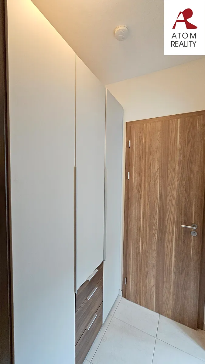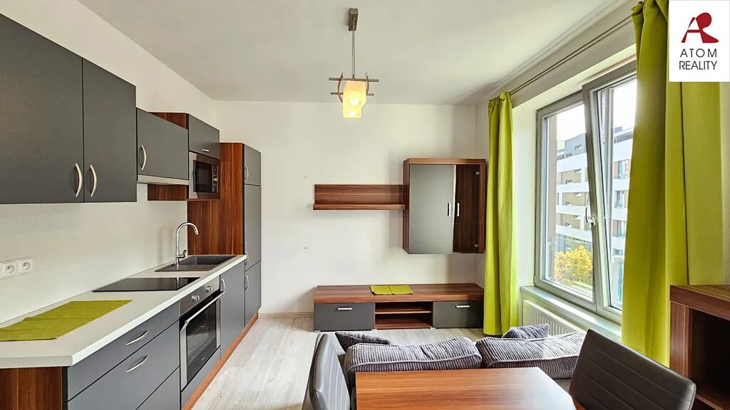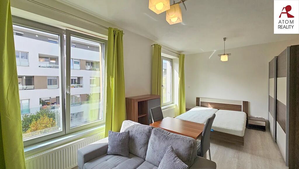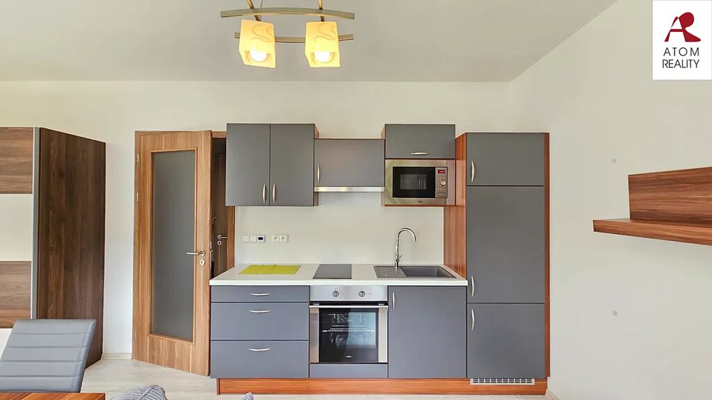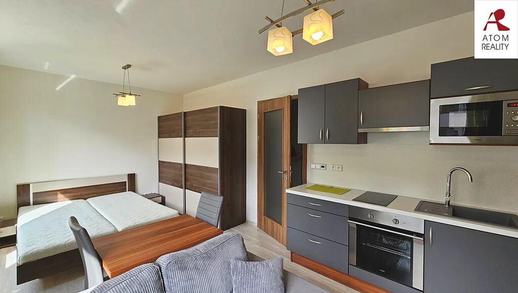 Byt o velikosti 1+kk nabízí praktické a moderní řešení pro jednotlivce nebo pár. Otevřený prostor s kuchyňským koutem je plně vybaven spotřebiči (trouba, mikrovlnná trouba, lednice s mrazákem, varná deska). K dispozici je také pohovka, šatní skříň a jídelní stůl se židlemi. V koupelně naleznete vanu a pračku. Úložné prostory jsou na chodbě v podobě velké skříně.