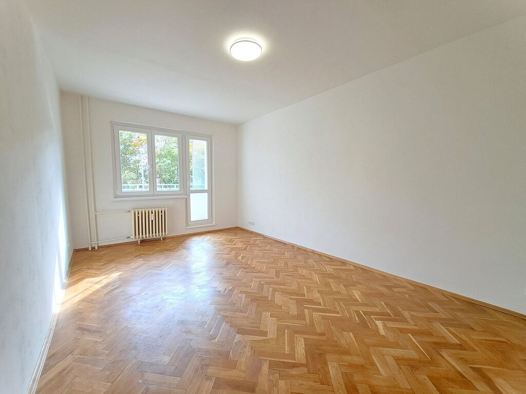 Dva samostatné neprůchozí pokoje + kuchyně : nová kuchyňská linka, včetně lednice, sporáku, mikrovlnné trouby, Na podlaze renovované parkety, koberec, PVC. V předsíni je prostorná vestavěná šatní skříň. V koupelně je sprchový kout, umyvadlo, pračka. WC je zvlášť, s malým umyvadlem. Kabelová televize, internet zaveden. V suterénu k dispozici sklepní kóje.