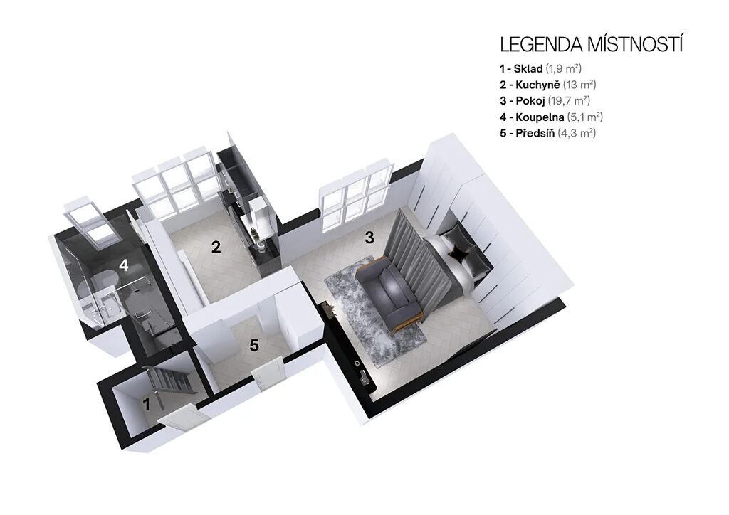 Byt má užitnou plochu 44 m². Byt je v osobním vlastnictvím a patří k němu také prostorná sklepní kóje (6 m²). Energetická třída je D, což přináší standardní náklady na vytápění a provoz domácnosti. Nyní probíhá kompletní rekonstrukce - možno ještě částečně upravit dle požadavků nového majitele.