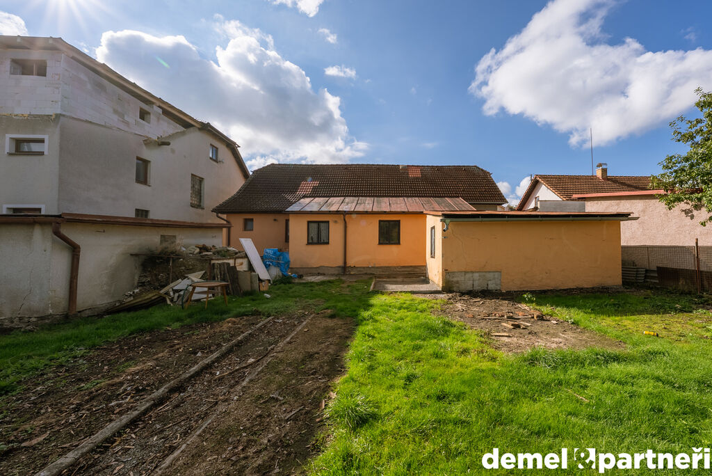 Tenhle rodinný dům stojí na pozemku 648 m² a teď má dispozici 3+1, ale tím to rozhodně nekončí – nahoře je velká půda, kde si můžeš v klidu udělat další pokoje. Takže celý patro navíc podle sebe. Okolo domu na tebe čeká rovná zahrada s výměrou 545 m². Ideální na posezení, bazén nebo cokoliv tě napadne. K tomu tu máš i pár přilehlých staveb (nejsou zapsané v katastru) a to včetně garáže. Dům je jednopodlažní s možností obytného podkroví a částečně podsklepený. Teď je v rozjetý rekonstrukci. To nejtěžší už je za tebou. Vybouráno, připravený hrubý rozvody elektřiny a vody, v části domu už i omítky. Takže teď přichází ta zábavnější část – dodělat si to podle sebe a dotáhnout to do finální podoby přesně tak, jak chceš ty a nebo prostě celé znova. Ale to je už jenom na tobě.
