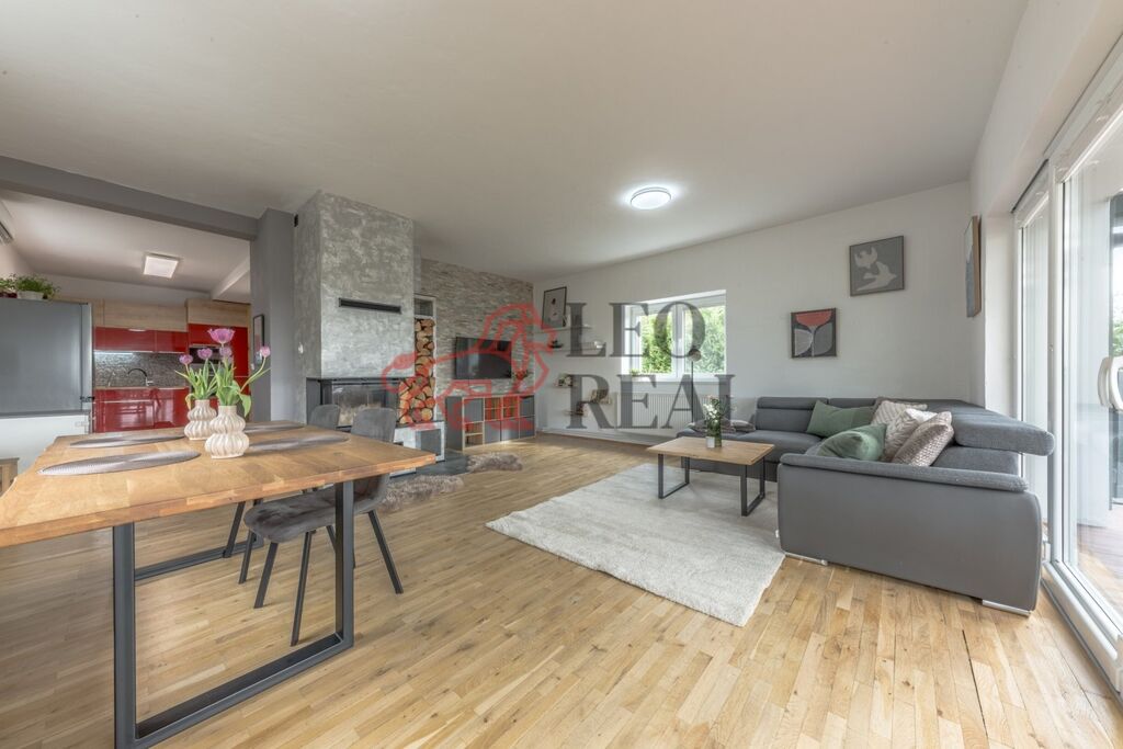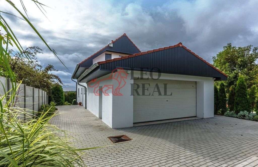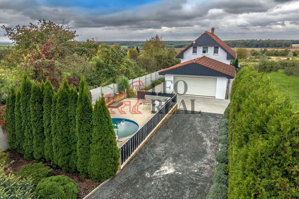 Nabízíme prodej mimořádného rodinného domu o dispozici 4+kk, s prostornou dvougaráží, bazénem a celkovou podlahovou plochou přibližně 220 m2 na udržovaném pozemku o výměře 1230 m2. Nemovitost vyniká kvalitním zpracováním a promyšleným dispozičním řešením s důrazem na moderní styl bydlení. Interiér v přízemí nabízí velkorysý obytný prostor s krbem, kuchyňským koutem, jídelnou a přímým vstupem na terasu, a první koupelnu s toaletou. V patře pak naleznete klidovou zónu; 3 ložnice a další koupelnu, tenokrát s vanou, a wc. Nad patrem je pochozí půda. V celém domě jsou důmyslně využity úložné prostory formou vestavných skříní.