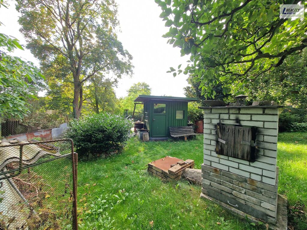 Zahrada je udržovaná, s kaskádovými záhony, ovocnými stromy a keři. Ve spodní části pozemku se nachází dřevěný zahradní domek (7,5 m²) a zděná udírna.