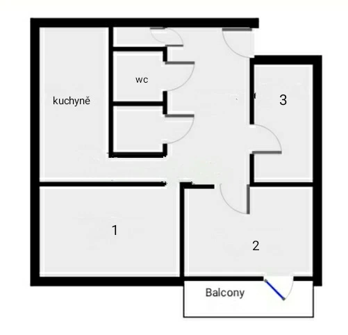 K dispozici jsou tři neprůchozí pokoje, které zajišťují dostatek soukromí. Velkým benefitem je prostorný balkón, ideální pro ranní kávu nebo večerní relaxaci, a praktický sklep pro uskladnění sezónních věcí.