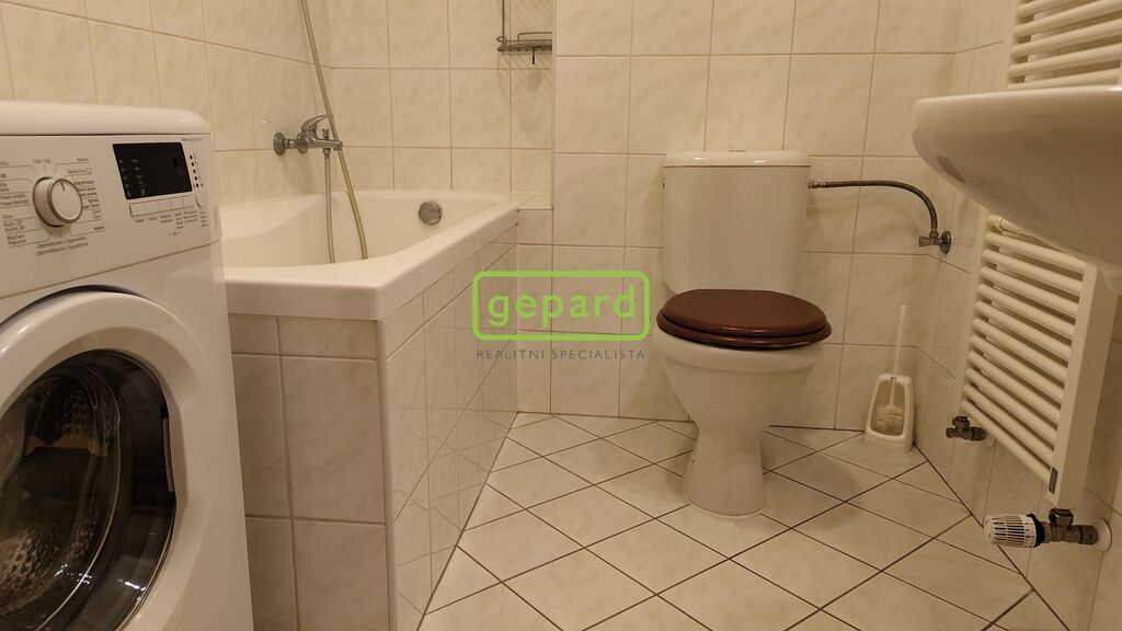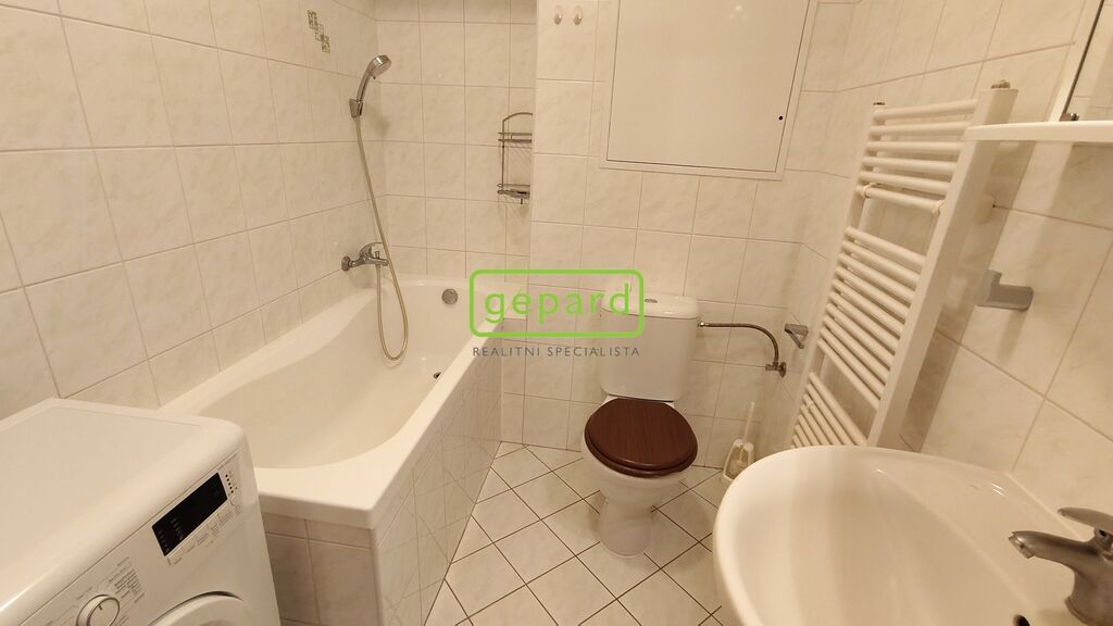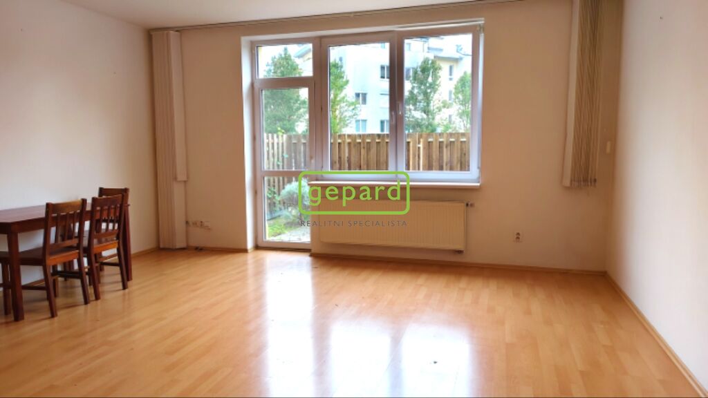Byt (39 m2) je tvořen předsíní, koupelnou s vanou a WC, obývacím pokojem s kuchyňským koutem a zahrádkou (19 m2). Na fotografiích je původní stav pokoje - v bytě se bude instalovat nová kuchyňská linka a vinylová podlaha. Byt bude vybaven bílou rohovou kuchyňskou linkou IKEA se spotřebiči (indukční varná deska, horkovzdušná elektrická trouba, digestoř, mikrovlnná trouba, lednice s mrazákem). V předsíni zůstává velká šatní skříň a v koupelně pračka. K nastěhování od poloviny listopadu. Vhodné pro 1-2 osoby.