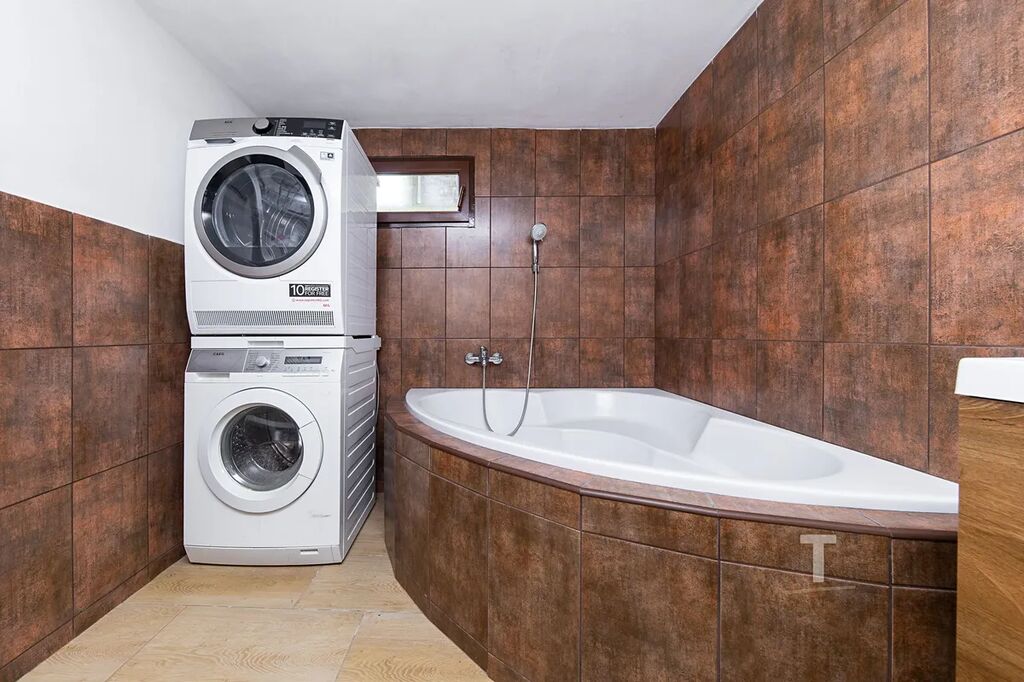 V přízemí domu se nachází kuchyň propojená s obývacím pokojem, kde jsou umístěna kachlová kamna, která zajišťují útulné vytápění. Nově zrekonstruovaná koupelna nabízí rohovou vanu, umyvadlo, místo pro pračku a samostatnou toaletu. Z obývacího pokoje je přímý vstup na zahradu, ideální pro posezení, grilování nebo zahradničení. K dispozici je také vstupní chodba a skladovací prostor na dřevo.