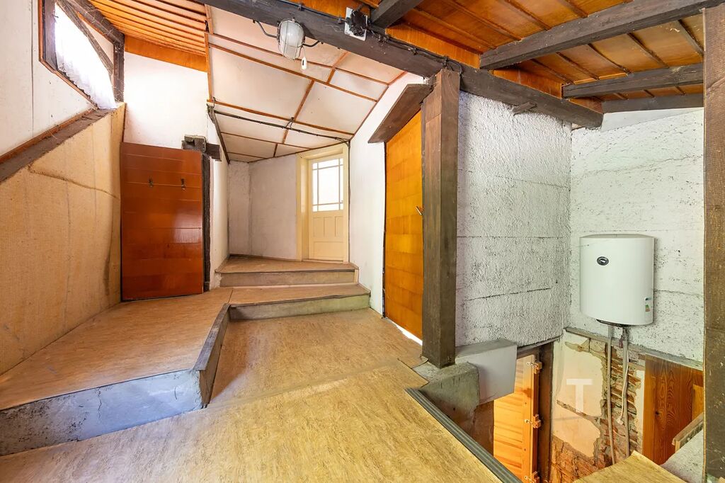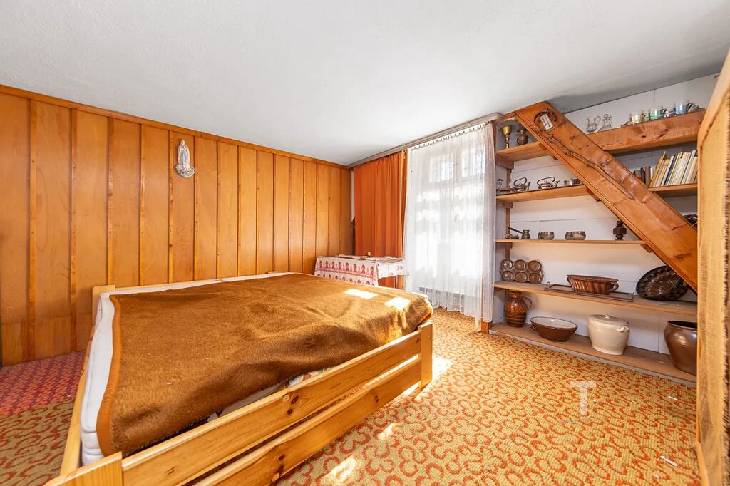 Do podkroví vedou schody, kde se nachází jeden pokoj a prostorná půda, kterou lze přeměnit na další obytné místnosti podle vašich představ. Vytápění domu je kombinované – kachlová kamna doplňují elektrické přímotopy a ohřev vody je zajištěn elektrickým bojlerem. Voda je obecní.