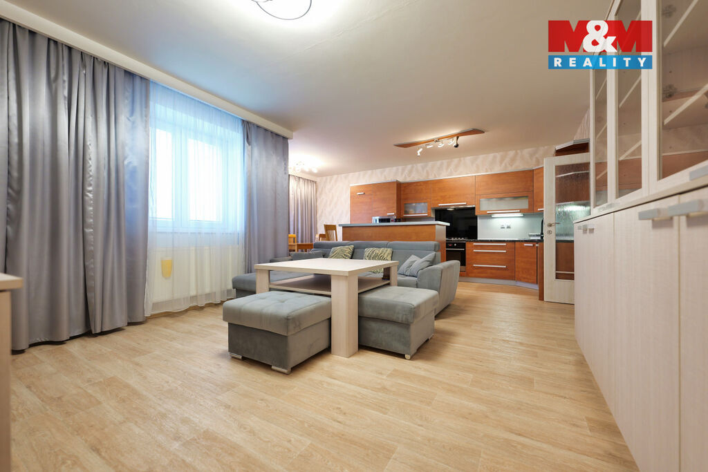 Interiér tvoří kuchyň s linkou na míru se spotřebiči (plynová deska, el. trouba, mikrovlnná trouba, lednice, myčka) a kuchyňským ostrůvkem navazujícím na obývací část se sedačkou, knihovnami a jídelním koutem. Další dva pokoje jsou samostatně přístupné i vzájemně průchozí. K dispozici je prostorná komora, šatna, koupelna s vanou a sprchovou zástěnou, samostatné WC.