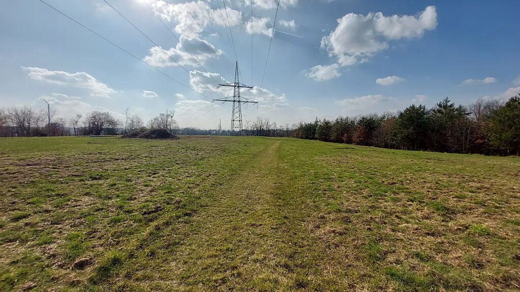 Pozemek není stavební, nejsou na pozemku přípojky IS. Přes pozemek vede vedení vysokého napětí.
