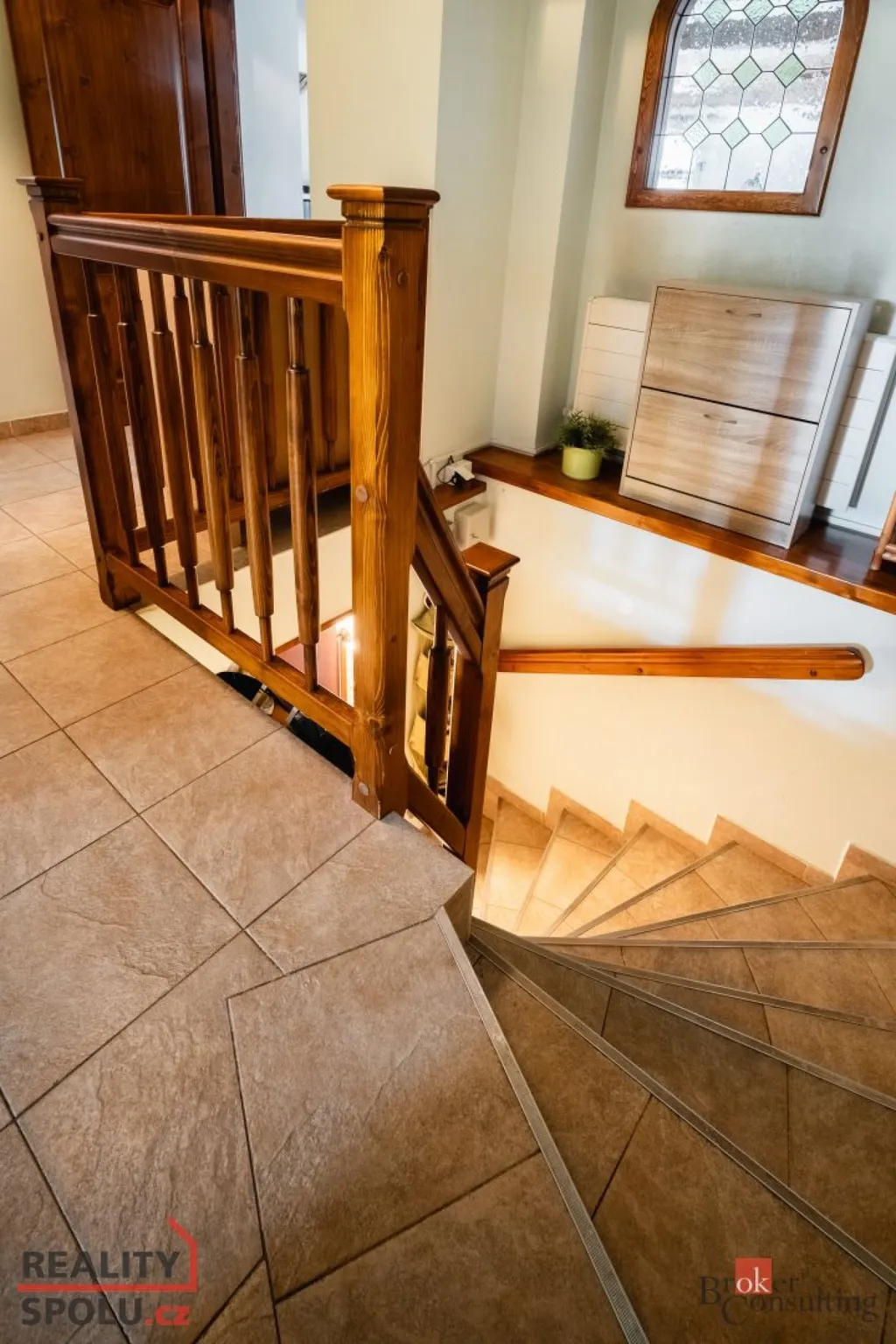 Vstup sem je vnitřním schodištěm i přes venkovní pavlač.