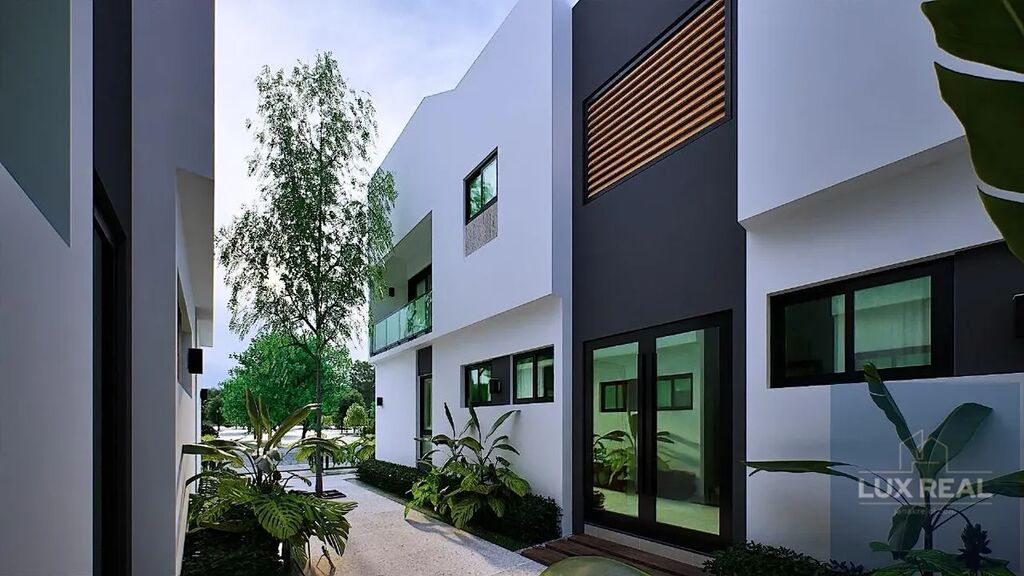 Luxusní rezidenční třípatrové domy s mezonetem s bazénem a whirpoolem jsou situovány na ideálním místě blízko restaurací a obchodů s docházkovou vzdáleností k jedné z nejkrásnějších panenských pláží Dominikánské republiky - Playa El Valle.