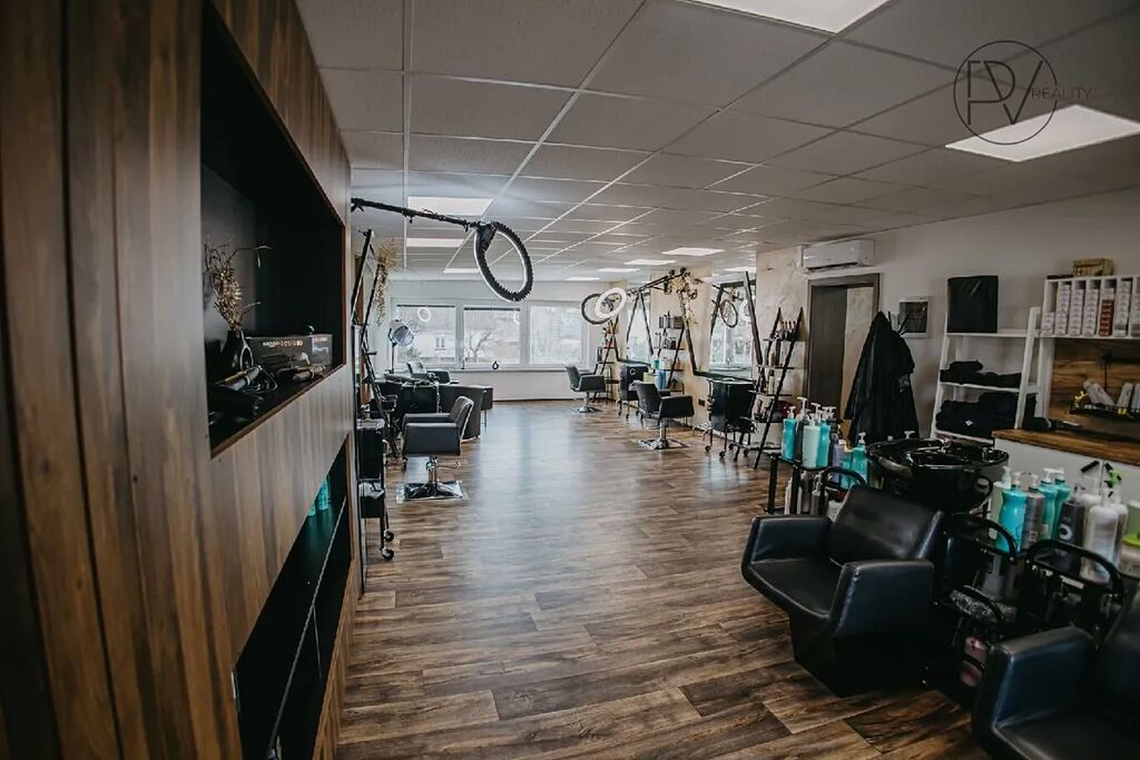 Součástí přenechání salonu je jeho kompletní vybavení – tři křesla, dva mycí boxy, klimazon, recepce, lednice, televize, vestavná skříň, plně vybavená pracovní kuchyň i šatna pro personál. V celém prostoru jsou nové podlahy, nainstalovaná klimatizace a interiér je celkově navržen ve stylu, který působí velmi elegantně. Velká okna propouštějí dostatek denního světla, přírodní tóny vytvářejí příjemnou atmosféru a stylové prvky dodávají salonu jedinečný charakter.