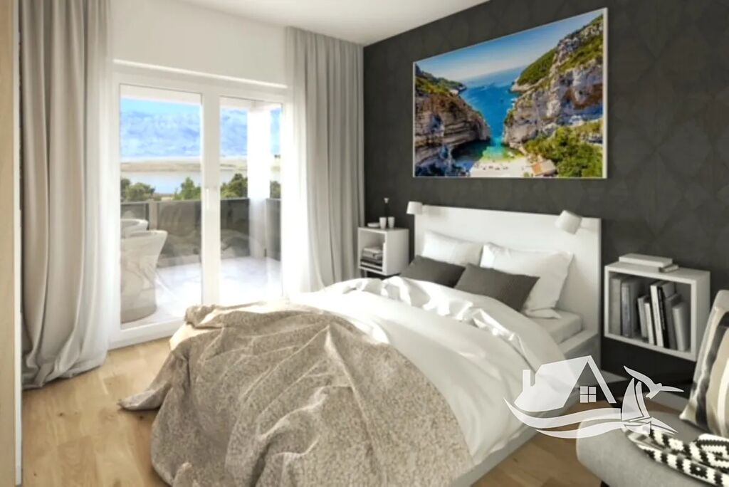 Na prodej je nádherný apartmán v novostavbě na ostrově Vir. Tento apartmán, umístěný v přízemí budovy, se pyšní výhledem na moře a přímým přístupem do prostorné zahrady.