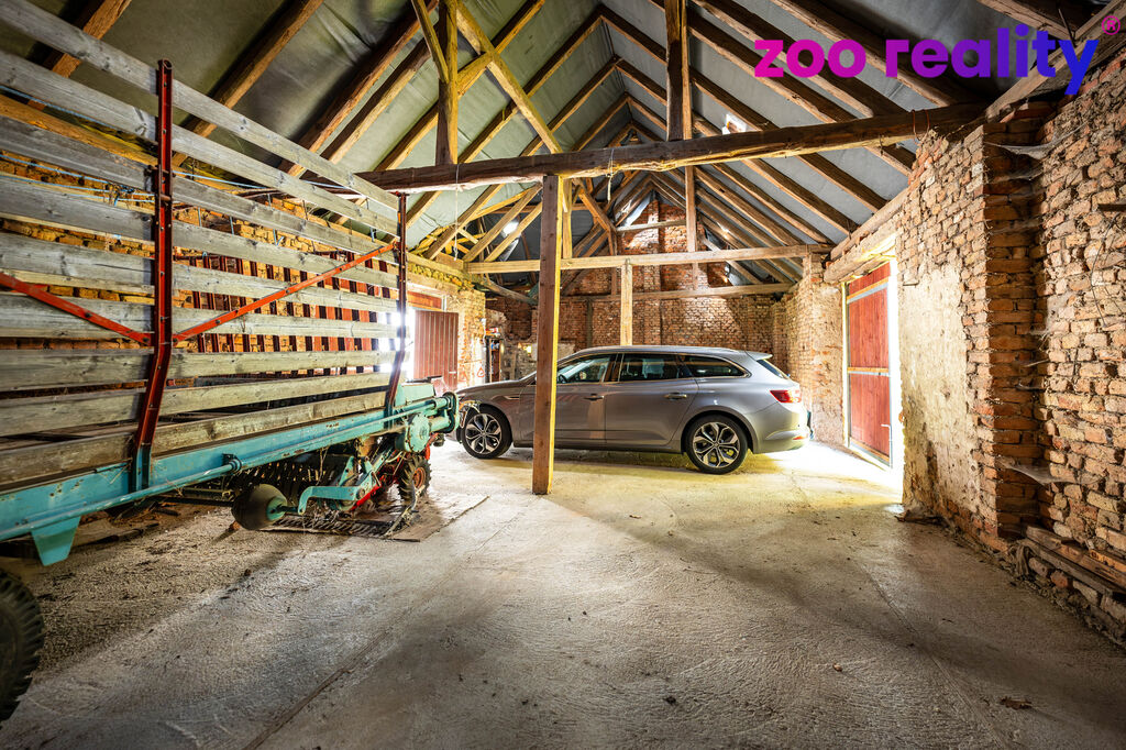 Nabízíme k prodeji rodinný dům, původní zemědělskou usedlost, která je určená k tvalému bydlení, k rekreaci, nebo i podnikání. Vnitřní dispozice obytné části nemovitosti je 3+1. Přímo v obytné částí je k dispozici koupelna se sprchovým koutem a WC a technická místnost - komora. Nemovitost nabízí možnost dalšího výrazného rozšíření obytné části v přízemí i do podkroví. Dům je vytápěn moderním plynovým kondenzačním kotlem a topný okruh lze připojit i na kotel na tuhá paliva. Na obytnou část navazuje velká stodola, která má betonovou podlahu a nabízí široké možnosti využití, např. parkování většího počtu vozidel nebo strojů, skladování materiálu, menší truhlářská nebo zámečnická výroba. Ve dvoře naproti domu je další stavba původních chlévů a černá kuchyně, která může být opět využita mnoha způsoby. Ve dvoře je venkovní posezení. Dvůr je ze tří stran uzavřený a otevřená strana směřuje na vlastní pozemek, takže prostor dvora poskytuje maximální soukromí a je velmi světlý. Vzrostlé stromy zabraňují přehřívání prostoru v letních měsících. Do dvora lze vjet autem hlavní bránou, stodola má vjezd ze dvora i ze zahrady. Součástí prodeje je i navazující pozemek o výměře 1444 m2, který je určen územním plánem k výstavbě. Pozemek je přístupný ze silnice. Pečlivý majitel nemovitosti průběžně udržuje a nemovitosti lze ihned užívat bez nutných investic. Velkou výhodou této nemovitosti je její poloha v okrajové části obce, což zaručuje klid a soukromí, přičemž je na dosah důležitých silnic a dálnice, což usnadňuje dopravu do okolních měst a oblastí.