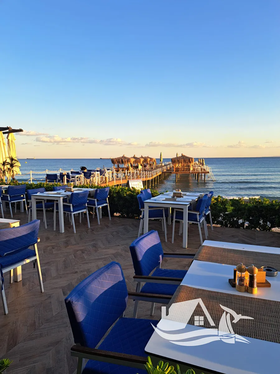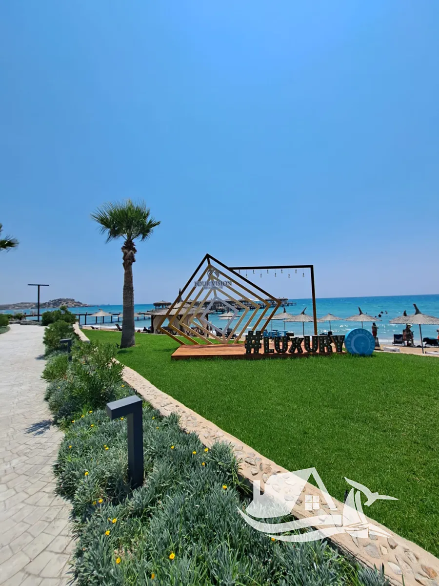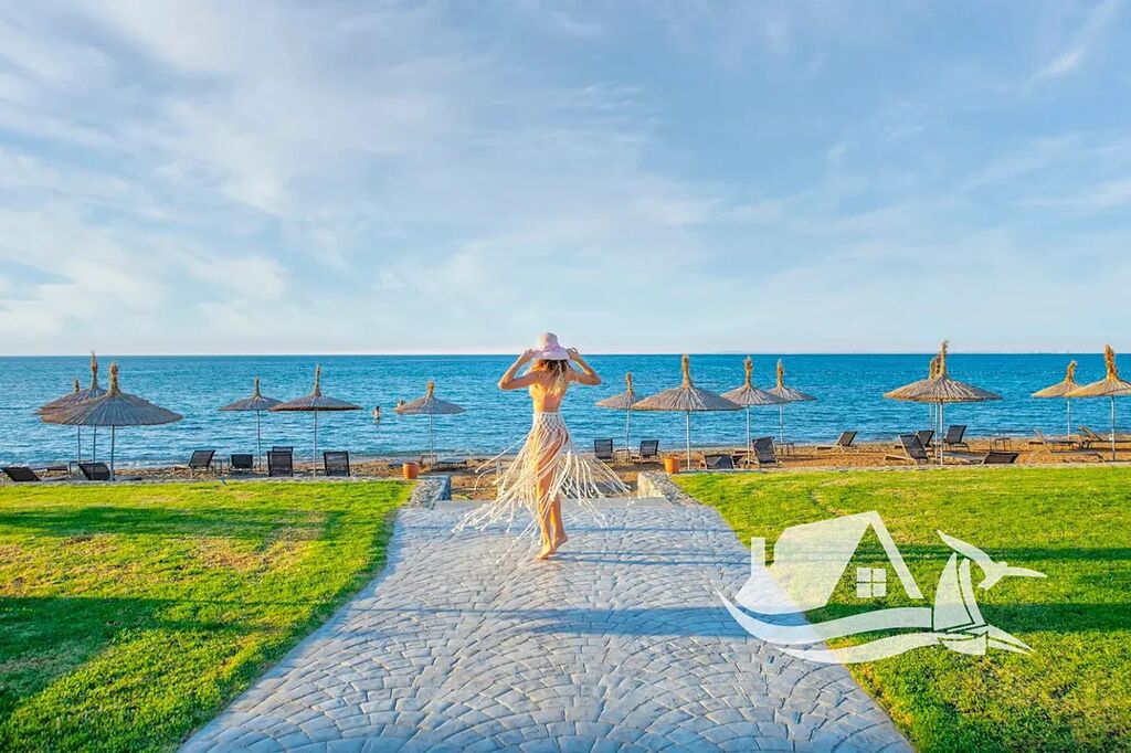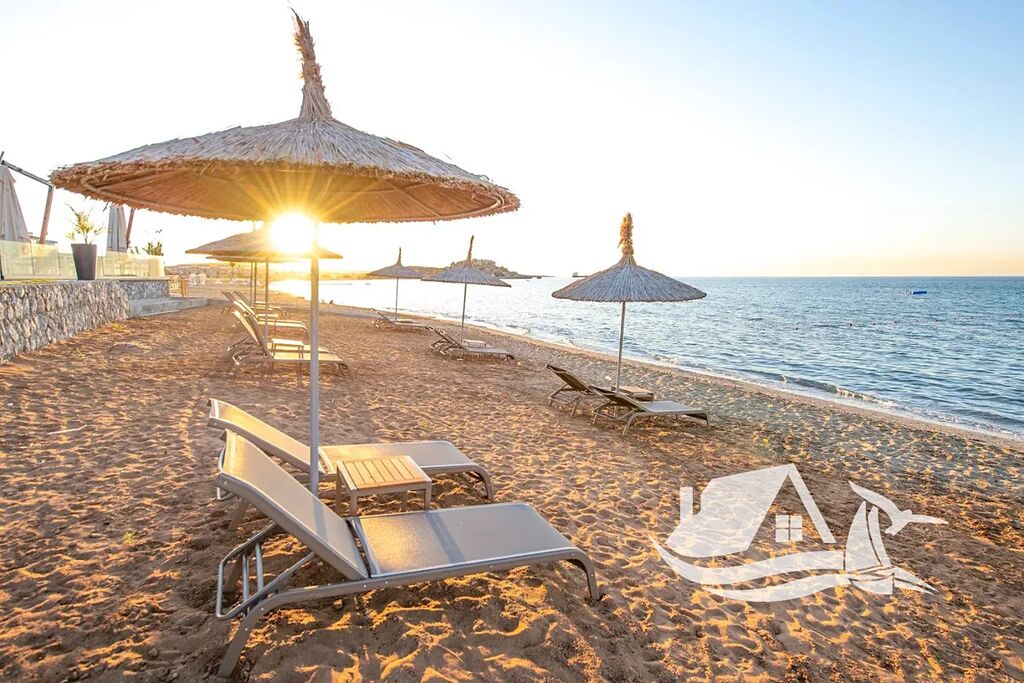 Obrovskou výhodou je fakt, že resort má vlastní pláž, kde jsou lehátka a domečky určené pro residenty projektu. Je zde nově i krásné molo s lehátky a boxy, kde si můžete objednat například osvěžující drink. Vstup na pláž je řešen podchodem pod silnicí. Podobných resortů je na Kypru velmi málo.