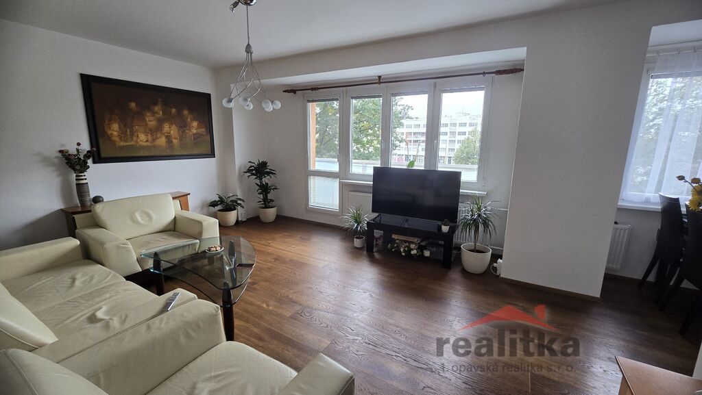 !!!REZERVACE!!!Nabízíme prodej krásného bytu 3+1, 70m2, s balkónem v Opavě na ul. Edvarda Beneše. Byt se nachází ve 3. patře panelového domu s výtahem. Dům je po celkové revitalizaci, je bezbariérový. Na domě není žádný revitalizační úvěr, FO je ve výši 894,-kč. Byt je po celkové, velmi kvalitní rekonstrukci. Majitelé odstranili stěnu mezi obývacím pokojem a kuchyní a vznikl krásný, vzdušný otevřený prostor. V celém bytě je nová elektřina, dřevěné kvalitní podlahy, masivní obložkové interiérové dveře, bezpečnostní vchodové dveře, plastová okna. V předsíni, pokoji a ložnici jsou vestavěné skříně, skříňky a manželská postel. Vše v bytě zůstává. Kuchyň je krásná, moderní, je zde zabudovaná elektrická trouba, presovač na kávu, myčka, indukce, odsávač par, lednice s mrazákem. Z obývacího pokoje je vstup na balkón. V koupelně je rohová vana, umyvadlo, napojení na pračku i sušičku. Wc je zvlášť. K bytu náleží sklepní kóje. Zájemci o prohlídku dle domluvy s paní Gratzovou.