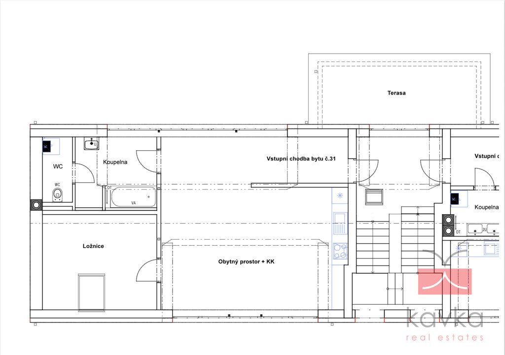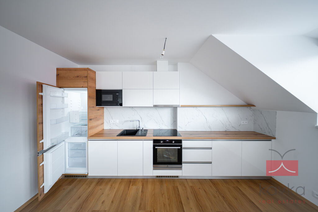 KAVKA REAL ESTATES Vám exkluzivně zprostředkují k pronájmu nový byt o dispozici 2+KK, užitné ploše 74,53 m² v centru města Humpolec. Byt se nachází v 3.NP třípodlažního nově realizovaného bytového domu o 6-ti bytech a je bez výtahu. U realizace tohoto objektu je kladený důraz na moderní a pohodlné bydlení v centru města Humpolec. Dispoziční členění: vstupní chodba, koupelna (vana), samostatné WC, kuchyň + obývací pokoj, pokoj. Součástí bytu je společná terasa (6,87 m2) s nádherným výhledem do okolí a sklepní kóje v suterénu bytového domu. Dále je zde možnost pronájmu venkovního parkovacího stání. Vytápění a ohřev vody je řešeno kondenzačním plynovým kotlem (podlahové vytápění) v kuchyni je ohřev vody řešen přes průtokový ohřívač. Nízké provozní náklady. Velmi dobrá lokalita. Kolaudace 2025. Veškerá občanská vybavenost nedaleko bytu. V případě zájmu o více informací či prohlídku kontaktujte makléře společnosti.