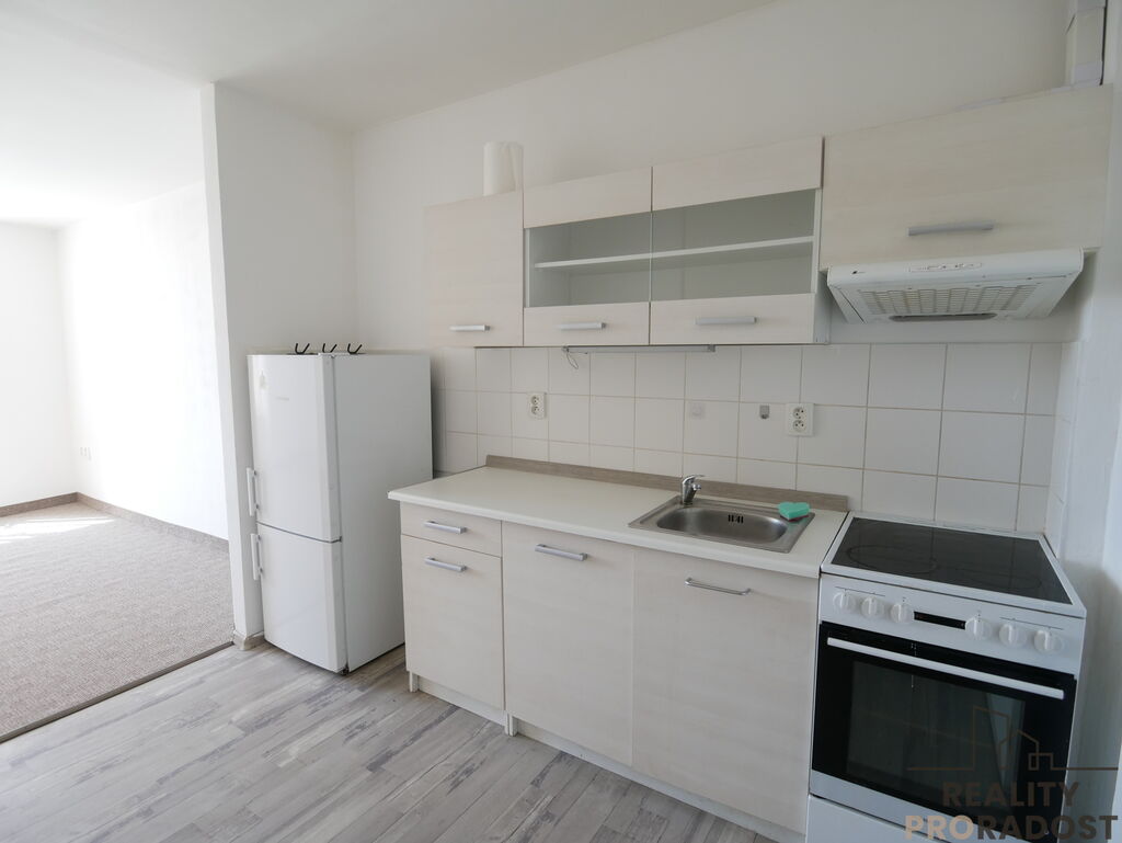 Dispozice bytu: vstupní chodba, kuchyň s kuchyňskou linkou a samostatně stojícím el. sporákem, digestoří, pokoj, koupelna se sprchovým koutem, WC a umyvadlem, komora.