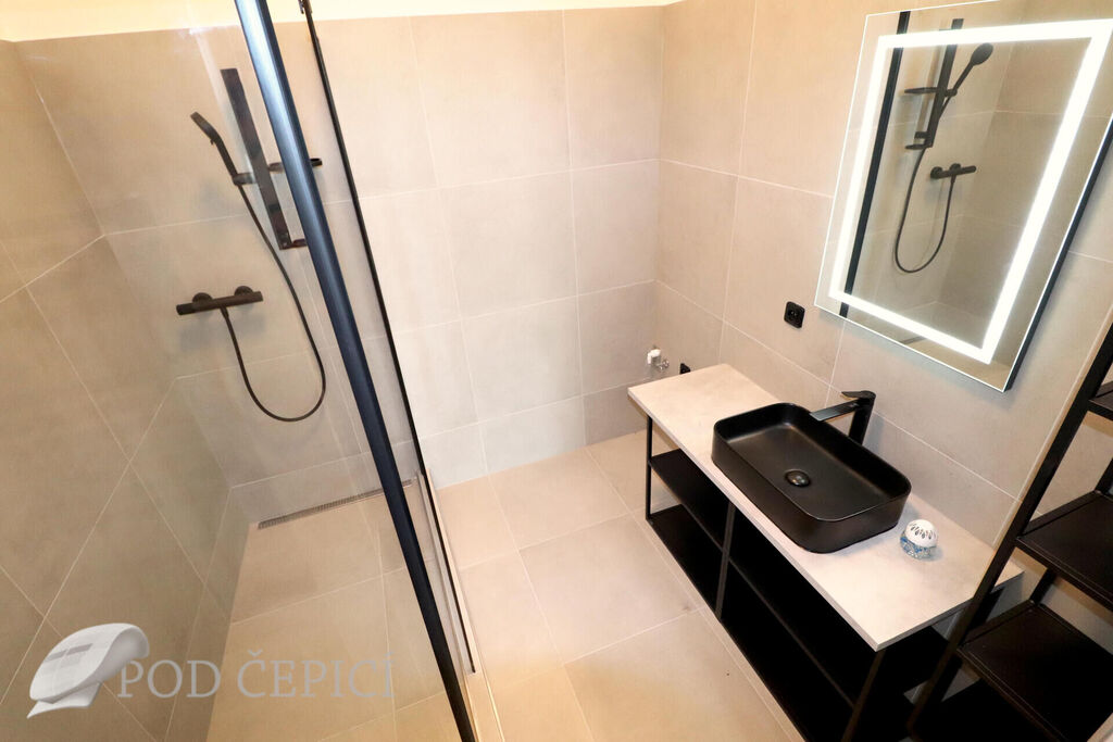 Nemovitost je nabízena bez vybavení, součástí jsou spotřebiče v kuchyni (lednice, varná deska, trouba, odsavač par, myčka nádobí). V případě potřeby lze o vybavenosti diskutovat s majitelem. Teplo a ohřev teplé vody je realizován dálkově, v těsné blízkosti veškerá občanská vybavenost.