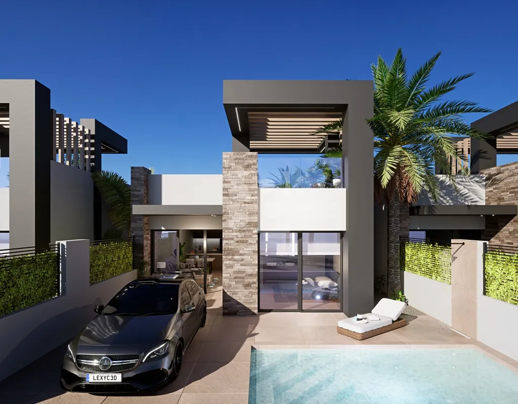 Krásné moderní vily postavené z vysoce kvalitních materiálů, nacházející se blízko nádherných pláží Guardamar del Segura (pouze 10 minut jízdy autem).