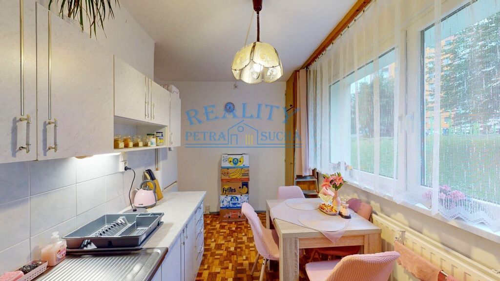 Nabízím k pronájmu prostorný byt o dispozici 3+1, s balkonem a výměře 76,93 m2 v osobním vlastnictví. K bytové jednotce náleží také sklep. Bytová jednotka se nachází v 1NP zatepleného panelového domu. Okna jsou plastová, na podlahách je položena PVC podlaha v kombinaci s koberci, v koupelně keramická dlažba. V kuchyni se nachází kuchyňská linka se spotřebiči - kombinovaný sporák, samostatně stojící lednice s mrazákem. V koupelně je umyvadlo, skříňka se zrcadlem, koupelnové skříňky, vana. Toaleta je samostatná. Bytová jednotka bude před nastěhováním kompletně vyklizena, nájemce si tak může byt zařídit podle vlastního vkusu.