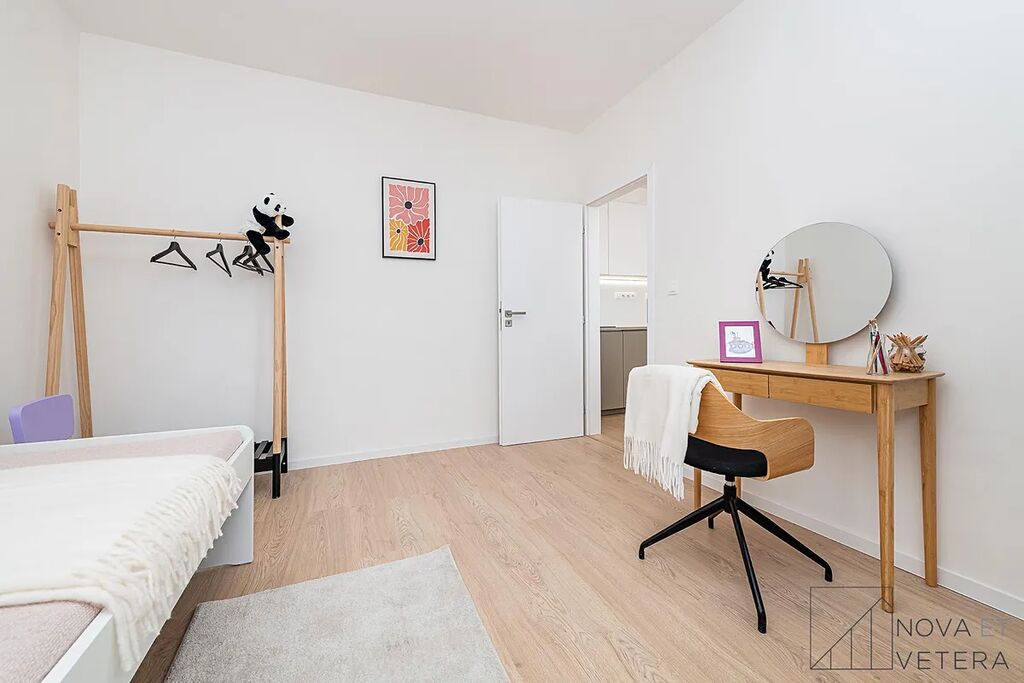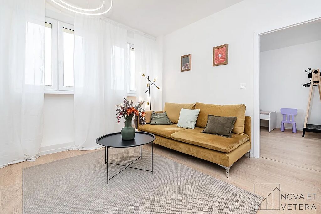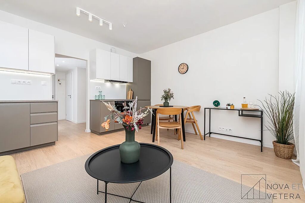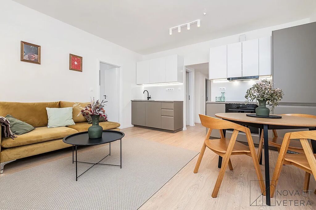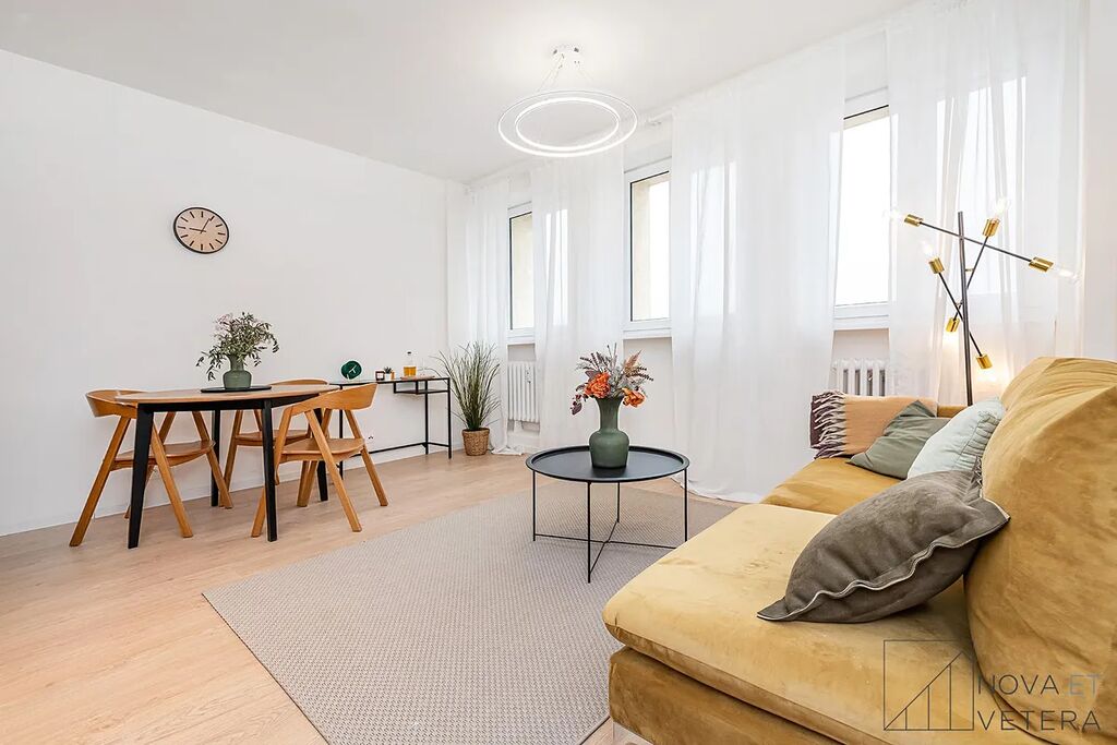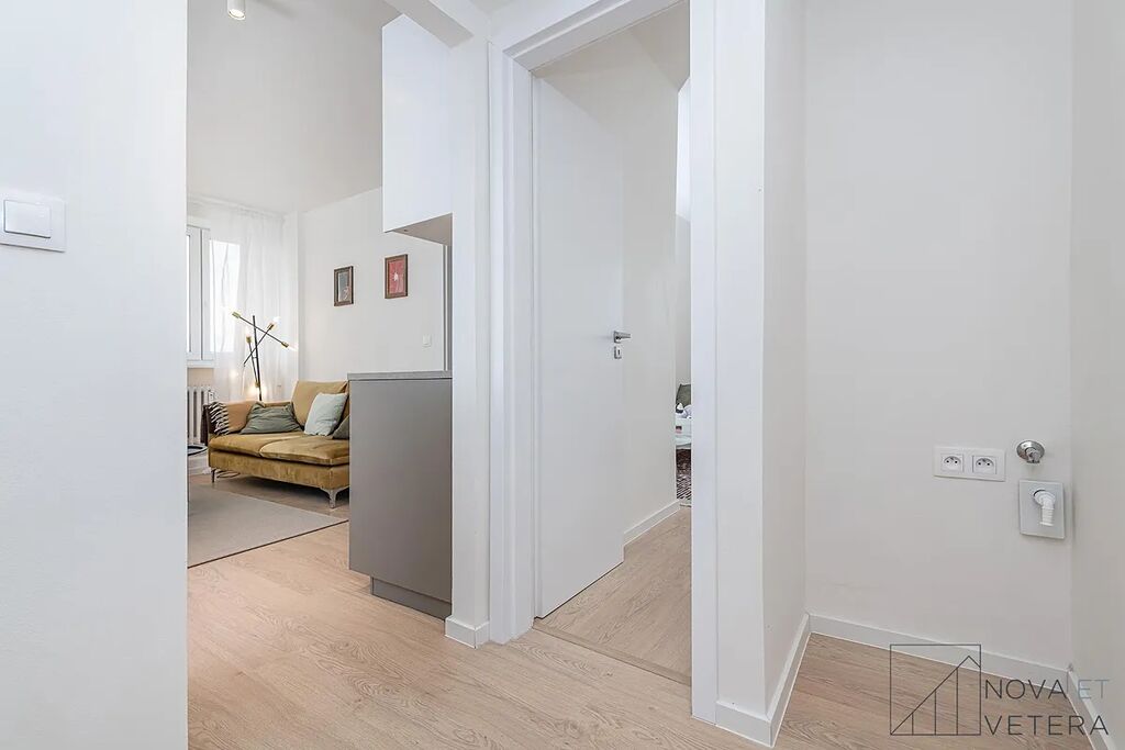 Byt právě prošel kompletní rekonstrukcí, která zahrnuje nové rozvody elektřiny, vody a odpadů, moderní podlahy, obklady a dlažbu italské značky Marazzi, a koupelnu i toaletu se sanitou značky Grohe. Součástí vybavení je také nová kuchyňská linka se spotřebiči značky Gorenje s prodlouženou zárukou 5 let.