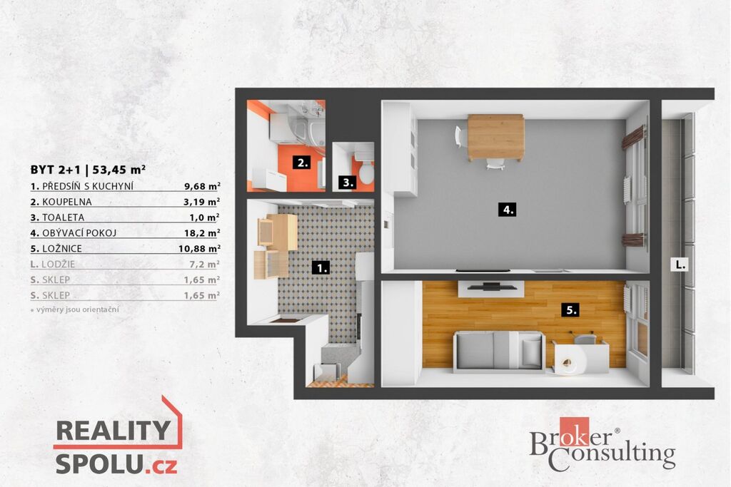 Dispozice 2+1, užitná plocha 53 m²