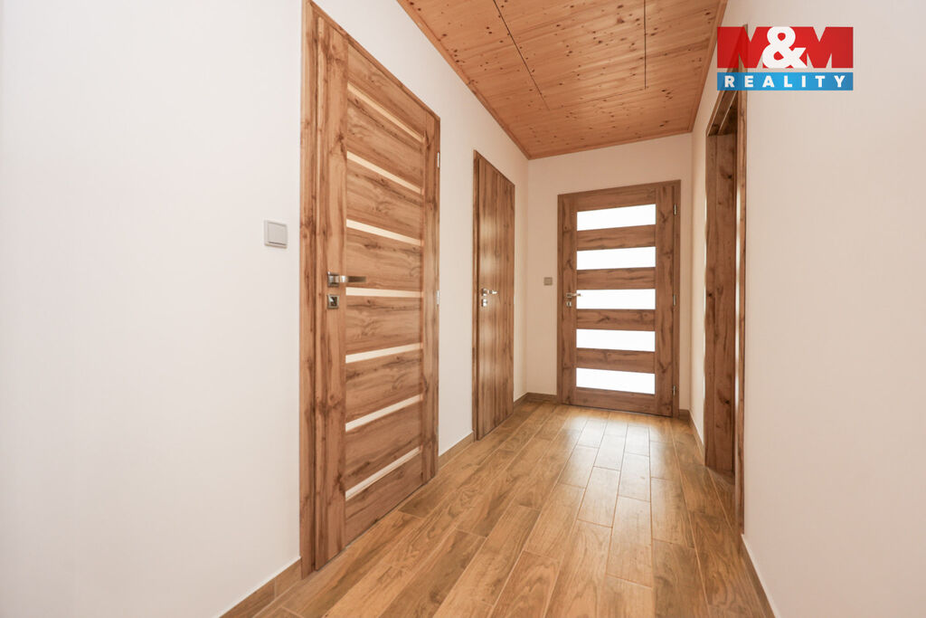 Dům je moderně řešen podlahovým vytápěním a krbovými kamny s rozvodem tepla do všech pokojů – teplo domova tak získává nový rozměr.