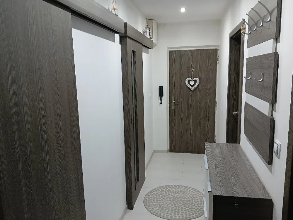 Byt prošel kompletní a velmi hezkou rekonstrukcí v roce 2015 - nové rozvody elektřiny, topení, nové podlahy, stropy, stěny, koupelna, kuchyň, dveře, vestavěná skříň a jiné. Okna jsou orientována na jih a sever, což zajišťuje dostatek světla po celý den.