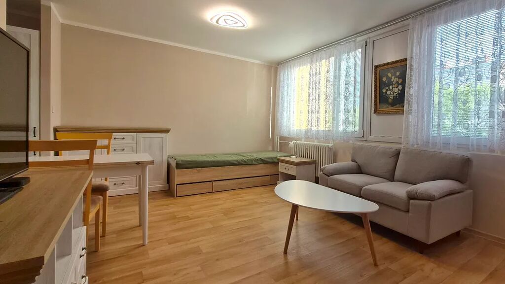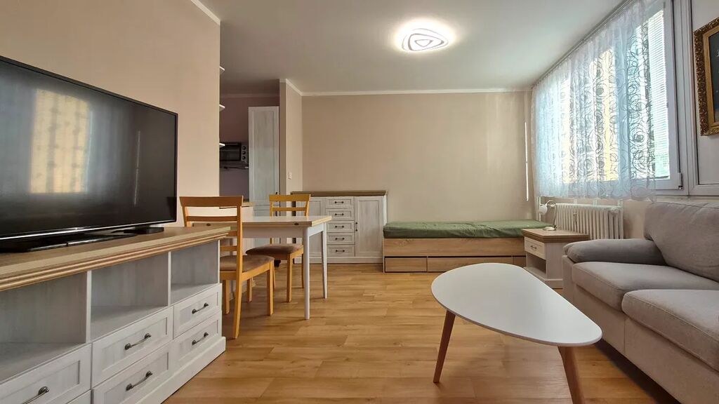 Pronájem útulného, zařízeného bytu 1+KK, Praha 8 – Bohnice, ul. Kostřínská. Okamžitě k dispozici.