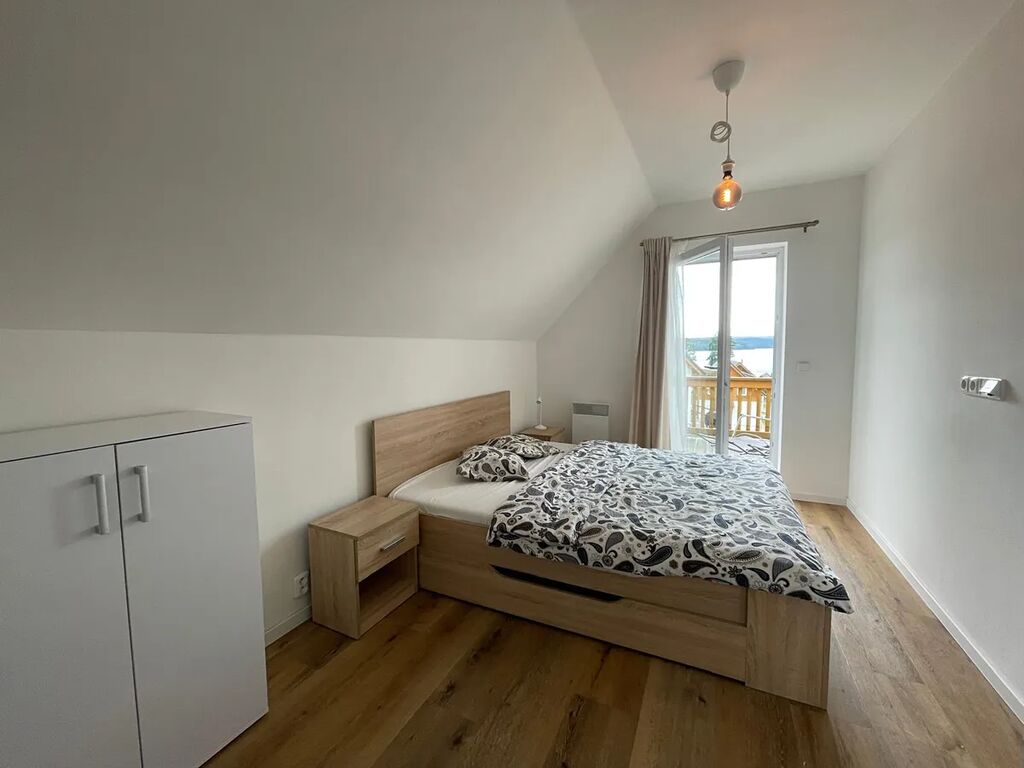 Dům s kapacitou až pro 6 osob poskytuje unikátní zázemí k rekreaci pro Vaší rodinu i budoucí klienty. Je navržen v souladu se šumavskou architekturou a důrazem na kvalitu stavebních materiálů, disponuje dvěma ložnicemi, pokojem, koupelnou, odděleným WC, technickou místností, dále obývacím prostorem s kuchyní a vstupem na krytou terasu a přístupem na vlastní zahradu. Součástí objektu je příplatkové vybavení, vinylové podlahy, podlahové vytápění, krbová kamna a masivní Alpha-wing balkon se vchodem z obou ložnic. Cena domu zahrnuje veškerý nábytek, vybavení, elektrospotřebiče a vlastní parkovací stání.