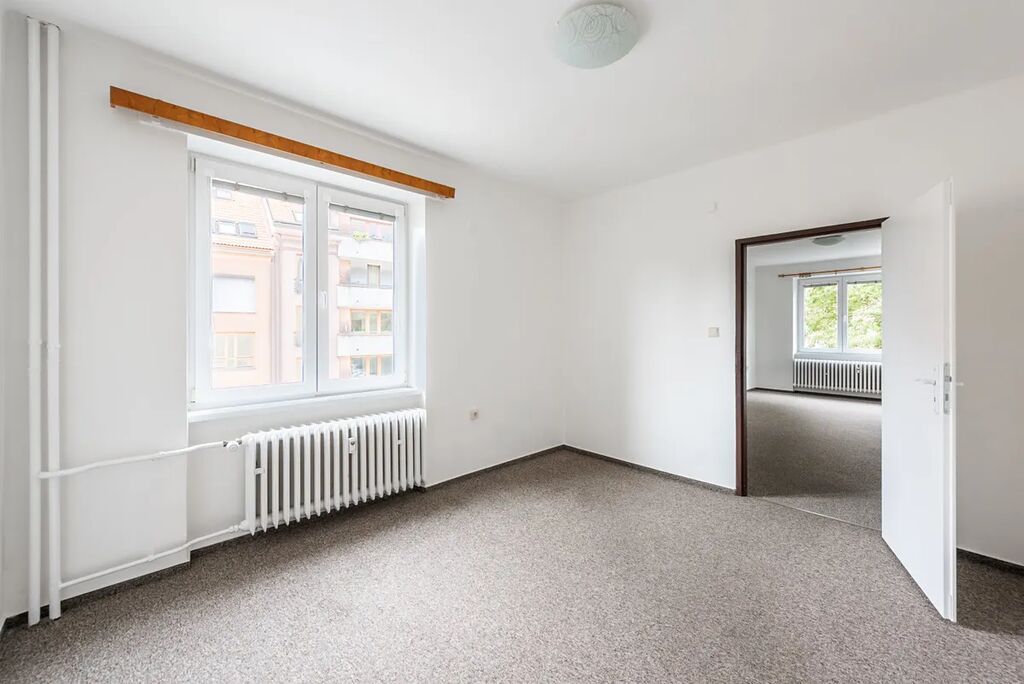 Byt o ploše 53 m² se nachází ve 3. patře rohového domu bez výtahu a má okna na tři světové strany, takže je příjemně světlý po celý den. Dispozici tvoří dva samostatné pokoje, kuchyň s jídelním koutem, předsíň s vestavěnými skříněmi, koupelna s vanou, toaleta odděleně.