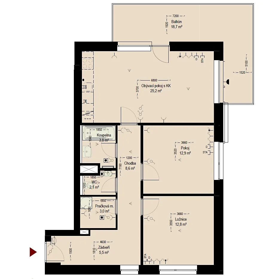 Nabízím k prodeji poslední byt v novostavbě, s dispozicí 3+kk o podlahové ploše 83,8m2 vč. příslušenství, které tvoří sklep o výměře 7,9m2 umístěný v suterénu domu. Tento byt (č. bytu 598/25) je umístěný v 2.NP a pyšní zajímavým rohovým balkónem o výměře 18,7m2. V rámci kupní ceny je také parkovací místo v suterénu domu.