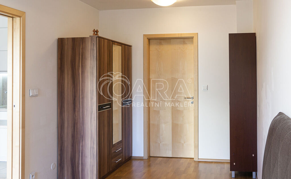 Koupelna je vybavena vanou a toaletou. Díky francouzským oknům v obývacím pokoji je byt velmi světlý, venkovní žaluzie na oknech umožňují regulaci světla podle vašich potřeb. Pokoje jsou vybaveny klimatizací. Byt se pronajímá nezařízený.