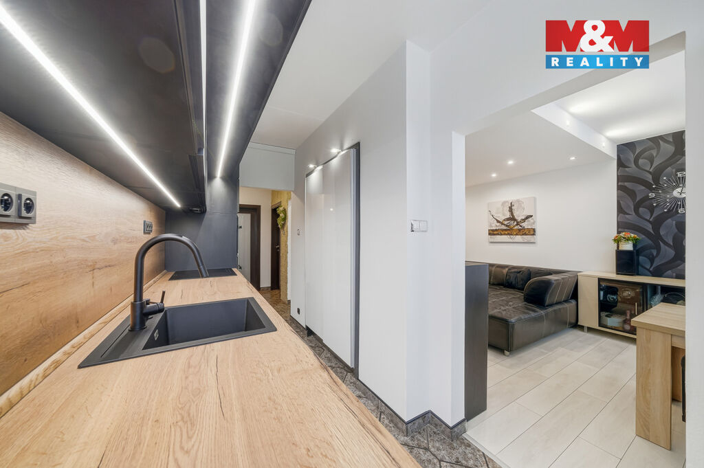 Nabízíme k prodeji moderně řešený slunný byt 3+1 o výměře 72 m², situovaný ve zvýšeném 1. nadzemním podlaží panelového domu v centru obce Hranice. Byt prošel rekonstrukcí a je ve velmi dobrém stavu. Dispozice zahrnuje obývací pokoj s krbem, moderní kuchyňskou linku, koupelnu s vanou, šatnu, dětský pokoj a chodbu s vestavnými skříněmi. K bytu náleží lodžie o velikosti 4 m², sklep a společná kočárkárna. V blízkosti se nachází park, což zajišťuje příjemné prostředí, a parkování je možné na ulici. Byt je ideální jak pro bydlení, tak jako investice. Nepropásněte tuto jedinečnou nabídku ve vyhledávané lokalitě! Prohlídkový den po předešlé domluvě s makléřem je plánován na 18.10.2025.