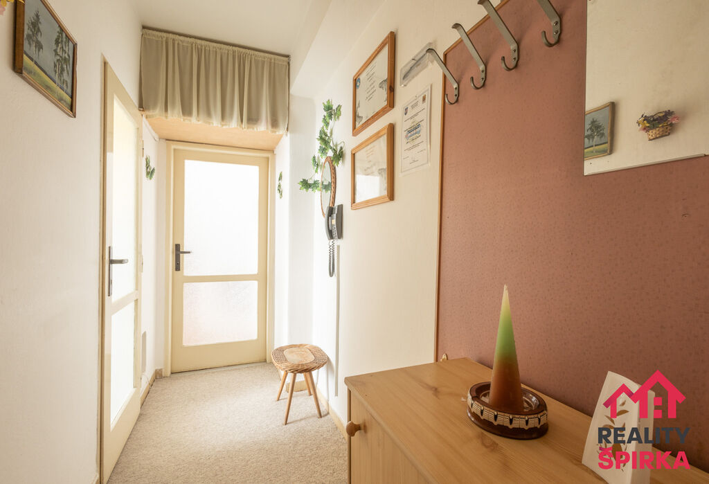 Byt je situován ve 3. NP zděného domu, kompletně vybavený a zařízený – ideální pro ty, kdo chtějí pohodlně začít společný život, nebo jako bezstarostná investice. Na chodbě je praktická menší vestavěná skříň, podlahy jsou kombinací betonu, parket, koberce a dlažby, okna plastová s dvojsklem.