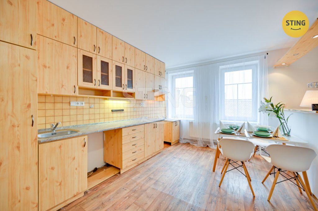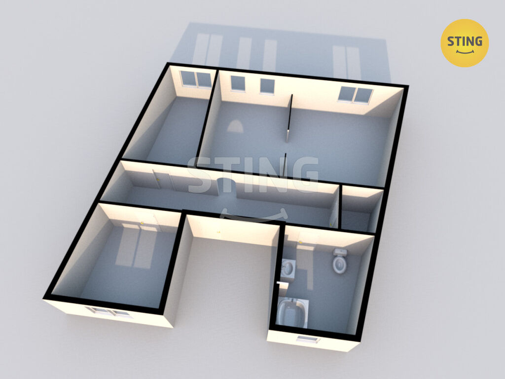 Nabízíme k prodeji pěkný byt o velikosti 3+kk v blízkém centru města Skuteč. Byt se nachází v 1.patře domu a k bytu je možné užívat balkón a část zahrady. Dispozice bytu: centrální chodba ze které je vstup do samostatných pokojů, prostorná koupelna s rohovou vanou a WC, obývací pokoj s kuchyňskou linkou a jídelním koutem a dva samostatné pokoje. Na centrální chodbě se dále nachází komora a schodiště na balkón a půdu. K bytu je možné využívat i sklep a kolárnu ve vstupní chodbě do domu. Byt je nezařízený - pouze ilustrační foto