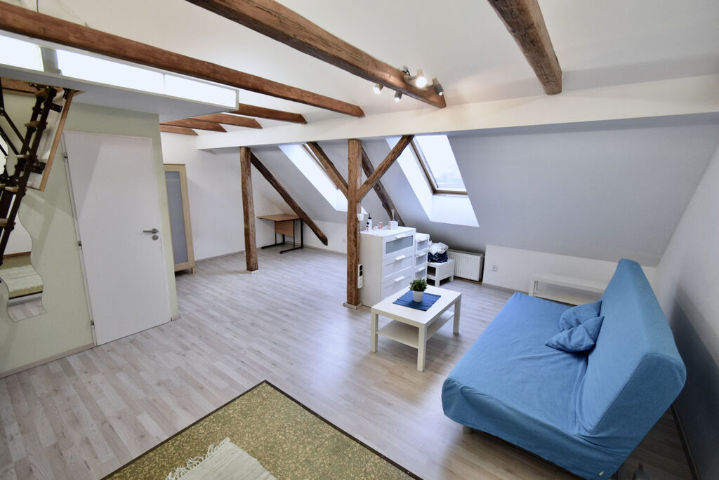 Byt se nabízí plně vybavený. Součástí kuchyňské linky je lednice, myčka, trouba a plynový sporák s digestoří. V kuchyni je i jídelní stůl se židlemi. Součástí obývací části je pohovka s konferenčním stolkem, komoda a skříň. V koupelně je sprchový kout, umyvadlo a toaleta. Součástí bytu je patro na postel.