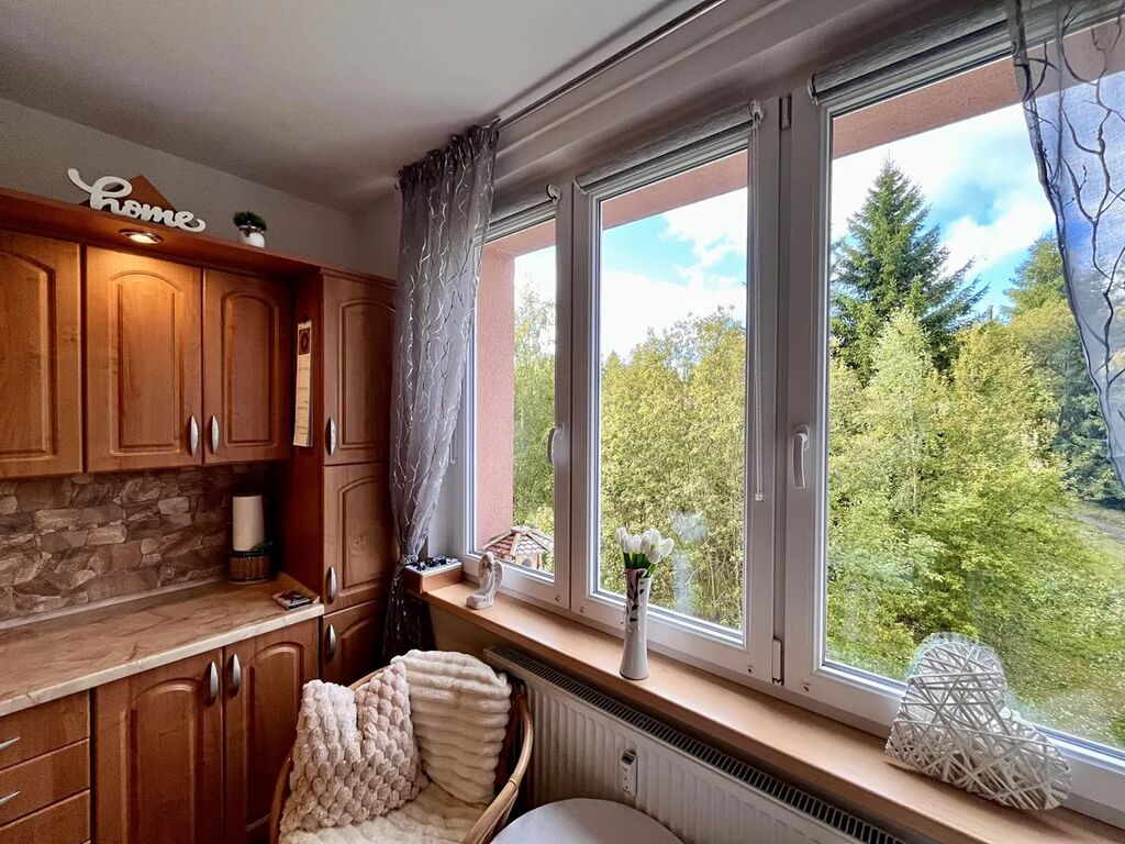 Tento byt je ideální volbou pro ty, kteří hledají klidné a pohodlné bydlení v malebném horském městečku. Je vybaven vším potřebným pro pohodlný život - kompletně vybavenou kuchyňskou linkou, zasklenou lodžií, garáží (dlouhodobý pronájem po dohodě), sklepem a částečně nábytkem. Panelový dům prošel rozsáhlou rekonstrukcí, včetně nových plastových oken a zateplení.