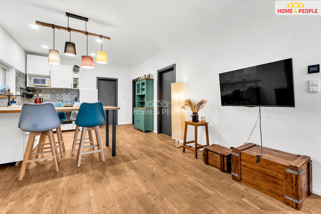 Dominantou domu je kuchyň s obývacím pokojem s kachlovými kamny na dřevo což dodává krásnou atmosféru celému domu. Dále najdete dvě ložnice, krásnou koupelnu s vanou a wc.