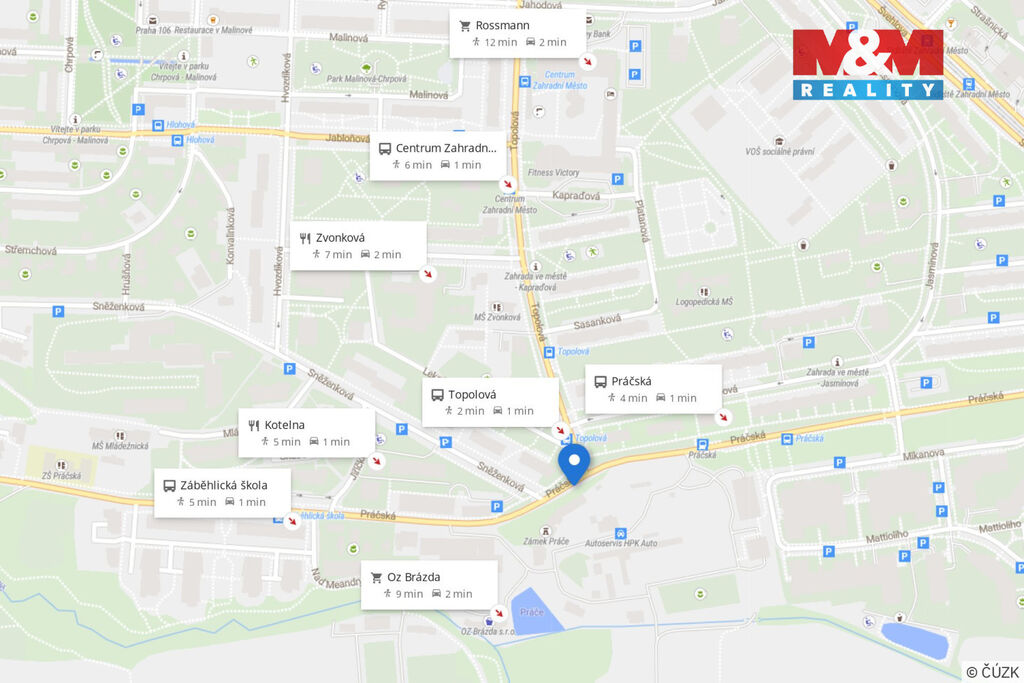 Dobré dopravní spojení MHD, kompletní občanská vybavenost.
