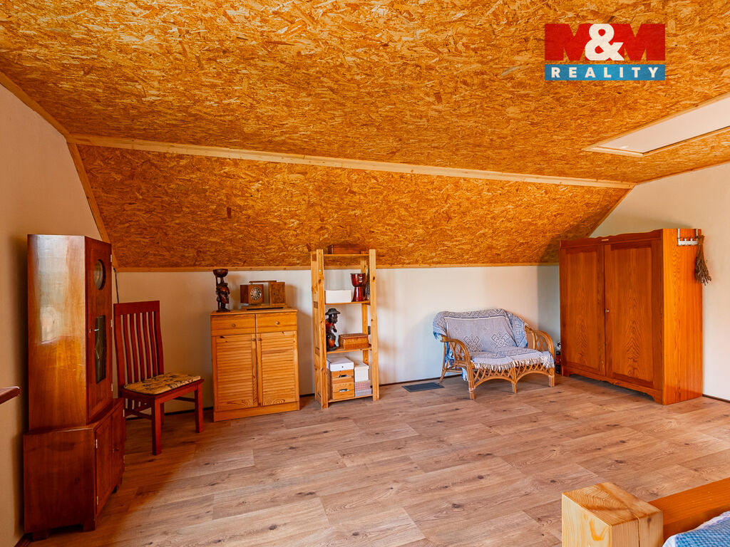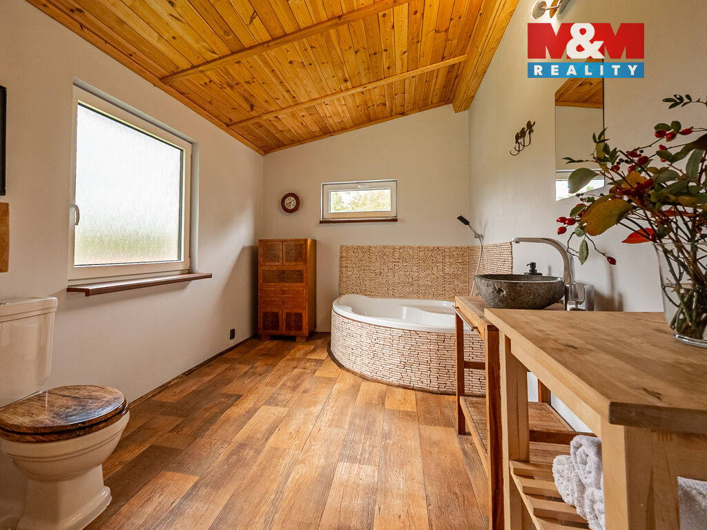 Nabízíme ve výhradním zastoupení k prodeji po stavební rekonstrukci v roce 2024 zděnou chatu v obci Soutice, nedaleko známé vodní nádrže Švihov, mezi městy Vlašim a Zruč nad Sázavou v okrese Benešov u Prahy. Tato nemovitost je vhodná k celoročnímu bydlení, má provedenou izolaci proti vlhku, zateplenou střechu a v současné době disponuje užitnou plochou 85 m². Majitel nyní ve spolupráci s úřady dokončuje povolení přístavby koupelny s chodbou. Dále je zde garáž s plochou 18 m², sklepní prostory s plochou 12 m² a venkovní terasu o výměře 18 m². V přízemí se nachází nová prostorná koupelna a obývací pokoj s kuchyňskou linkou. Dominantou této místnosti jsou krbová kamna na dřevo a vstup na terasu. Ve 2. NP se nachází ložnice a v dalším patře půdní prostory. Akčním bonusem této chaty je udržovaná zahrada o výměře 807 m² s novým oplocením, filtrovaná voda z vlastní studny, septik a nízké náklady na bydlení. Pro více informací volejte makléře.
