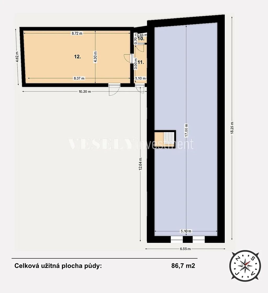 Tvoří volný půdní prostor (86,7 m2) s výškou ve štítu 4m, vhodný pro vytvoření jedné či dvou bytových jednotek. Vstup je zajištěn přes dvůr samostatným vchodem