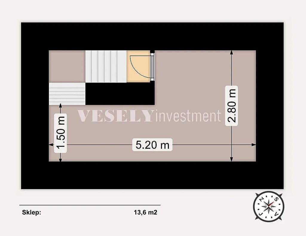 Vstup do budoucího obchodního prostoru o celkové výměře 80,3 m2 má vstup z hlavní ulice (Benešovská) tvoří prodejnu (38,8 m2), sklad (37,2 m2) a sociální zařízení. Sklad přístupný, i na dodávku objemného zboží, ze zahrady domu.