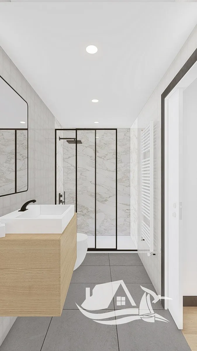 Dům je rozvržen do dvou podlaží a nabízí vše, co moderní bydlení vyžaduje. V přízemí se nachází otevřený obývací prostor propojený s kuchyní a jídelnou, které přirozeně navazují na prostornou terasu o velikosti 52 m². V horním patře se nacházejí ložnice s vestavěnými skříněmi a přímým vstupem na soukromý balkon. Dvě elegantní koupelny a samostatná toaleta doplňují interiér, který je promyšlený do posledního detailu.