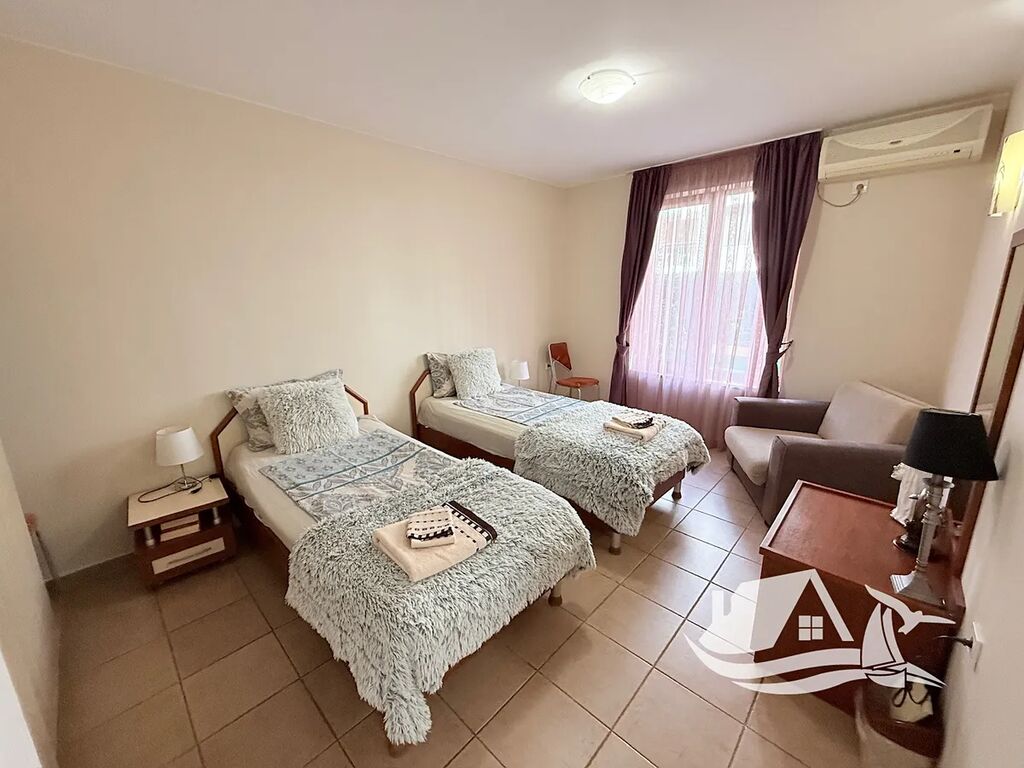 Tento útulný apartmán se dvěma ložnicemi o celkové ploše 90 m² se nachází v přízemí oblíbeného komplexu Summer Dreams na Slunečném pobřeží. Byt je plně zařízený a připravený k okamžitému nastěhování. Z balkonu se otevírá pohled do klidného dvora a na bazén, což z něj činí ideální místo pro odpočinek i práci na dálku.