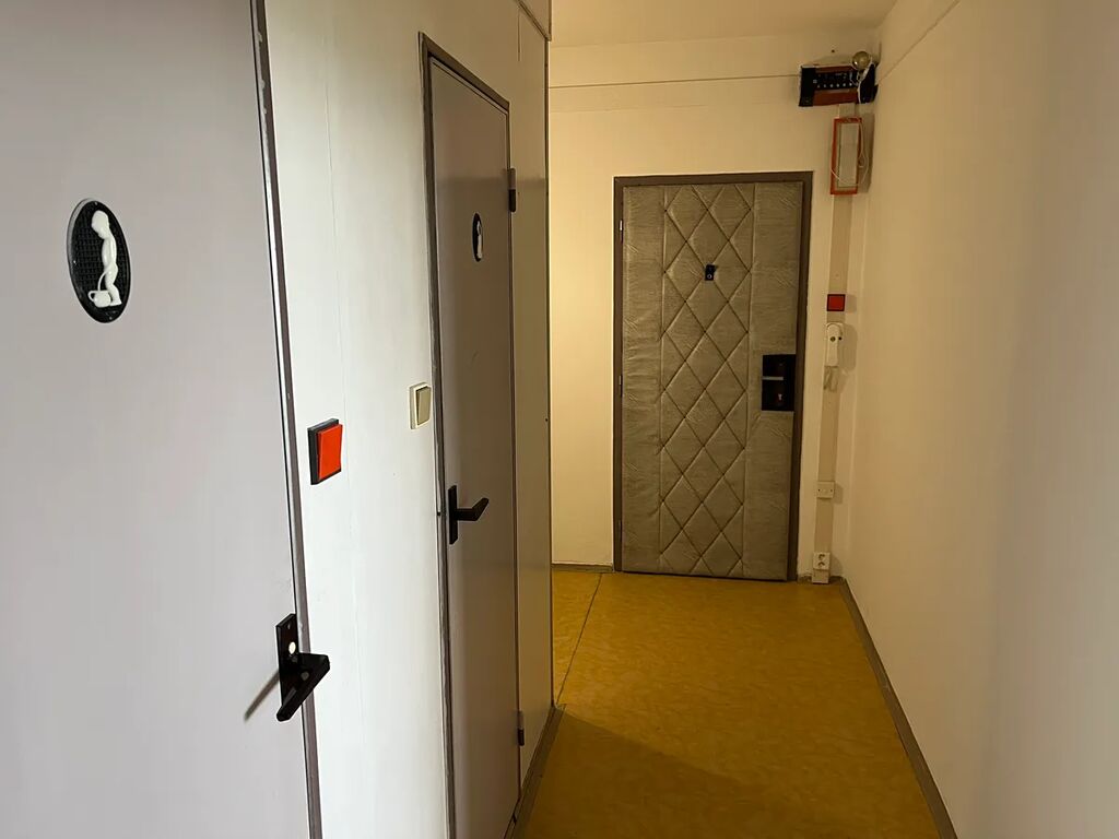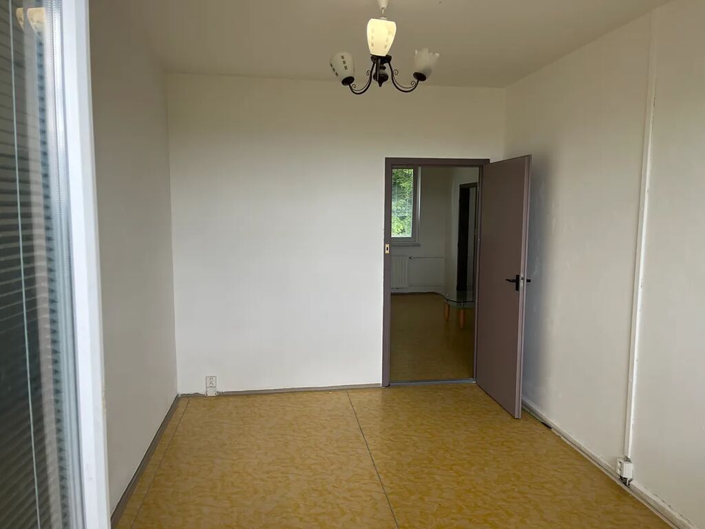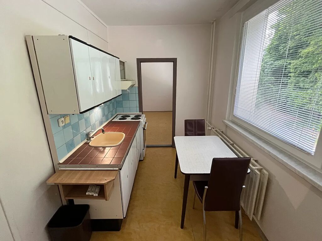 Dispozičně: Kuchyně s el. sporákem s okny na severovýchod směrem k lesu a volnokapacitnímu parkovišti za domem, prostorný obývací pokoj rovněž na severovýchod, další 2 neprůchozí pokoje na jihozápad se slunnou krytou lodžií, koupelna s vanou, samostatné WC, na chodbě se nacházejí vestavěné skříně. K bytu náleží sklep.