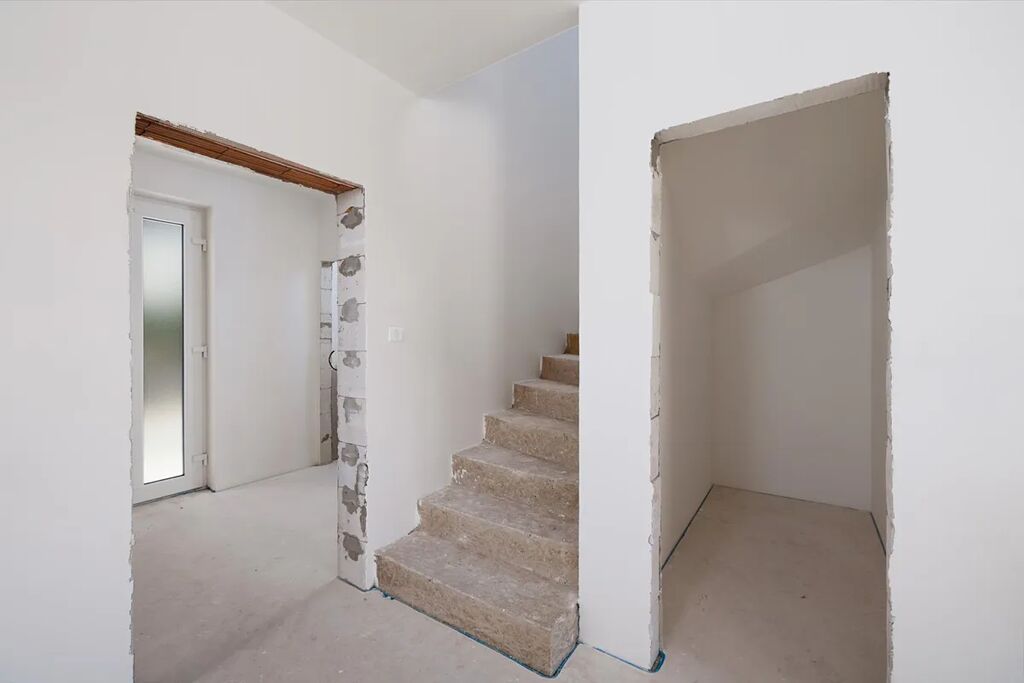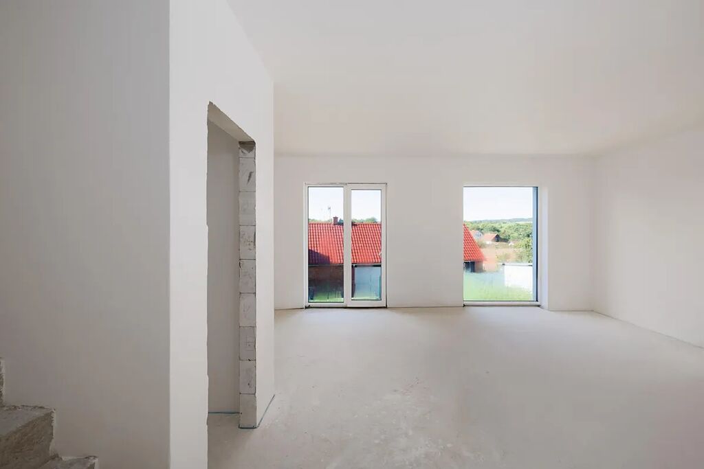 Uvedená cena je po dokončení stavby (svrchní povrch podlah lepený vinyl a keramická dlažba, obložkové dveře) bez kuchyňské linky.