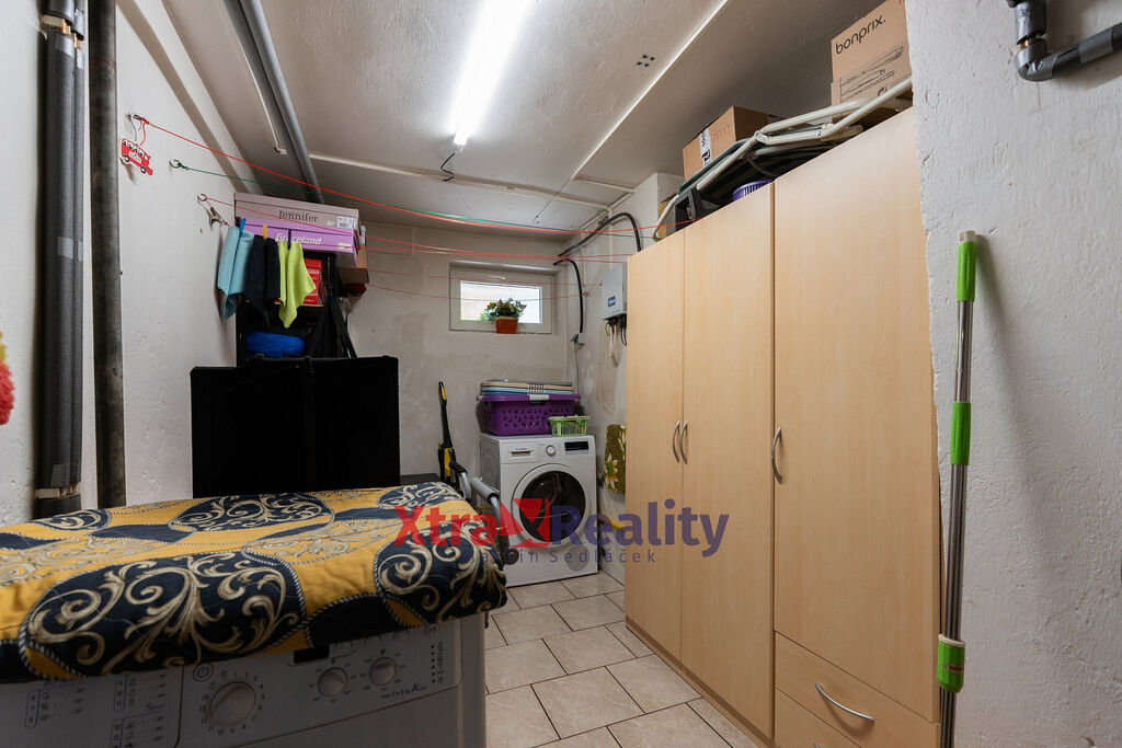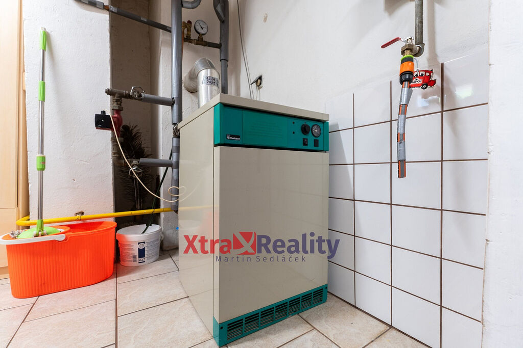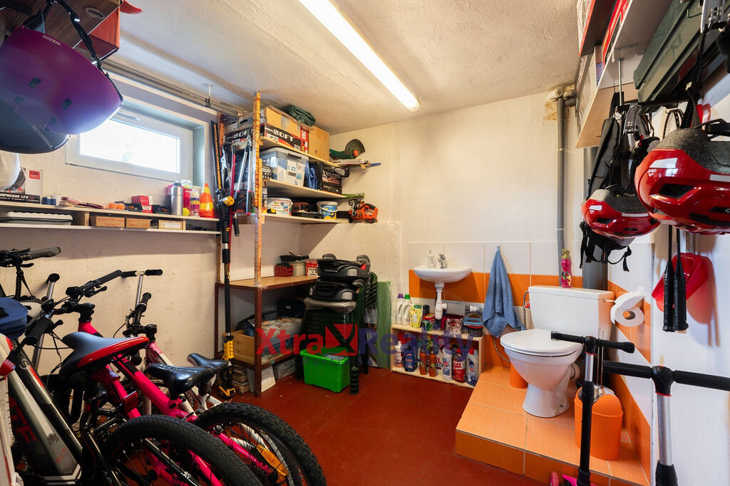 Dům má užitnou plochu 230m² a skládá se z 1. NP, kde nalezneme technické místnosti, garáž o velikosti 15,6m², WC a spíž.