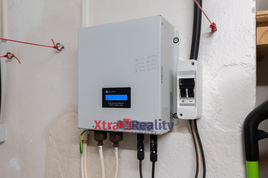 Na střeše byly instalovány fotovoltaické panely o výkonu 2,52 kWh se střídačem o výkonu 3,5 kWh. Tento systém zajišťuje provoz 3 bojlerům ( 2x 100 litrový – každý o výkonu 1500W a jeden 140 litrový o výkonu 2000W).